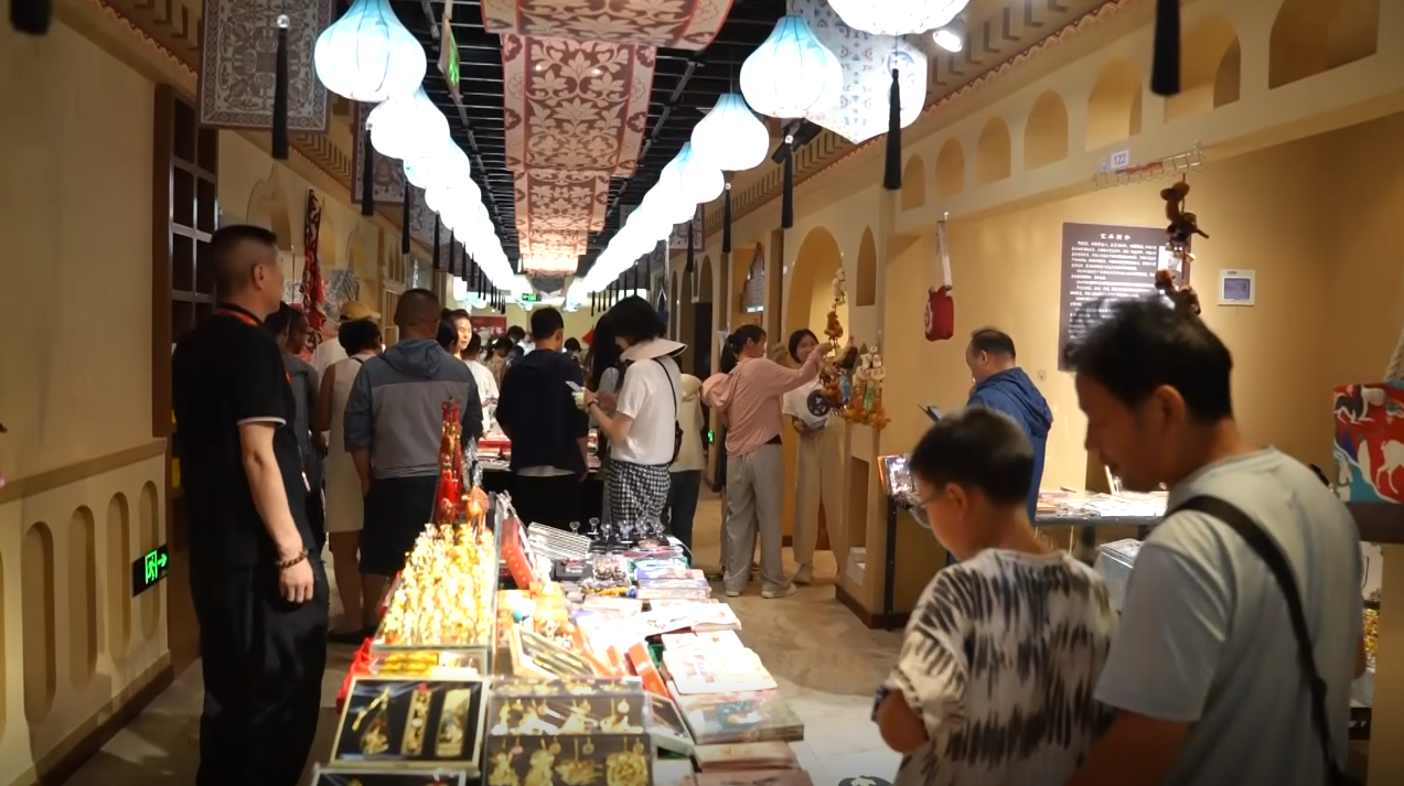 《乐动敦煌》工作人员王琦说:“除了首部洞窟式沉浸体验剧《乐动敦煌》以外,打造的上元市集同样亮点十足。市集以古丝绸之路文化交融为背景,是大型丝路非遗文化互动街区,集剧、艺、食、趣、学于一体。不仅有乐舞表演特色打卡景观,还重现了古丝路的繁华;东西市与美食市集汇聚丝路美食,如沙葱牛肉饼、红柳烤肉等;上元雅集则集合IP衍生品、文创好物,结合非遗展示与手作体验,带来古今交融的文化体验。多元消费场景的构建,有效延长了游客停留时间,带动餐饮、文创等消费增长,为提振文旅消费注入活力。”