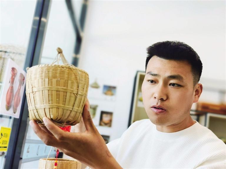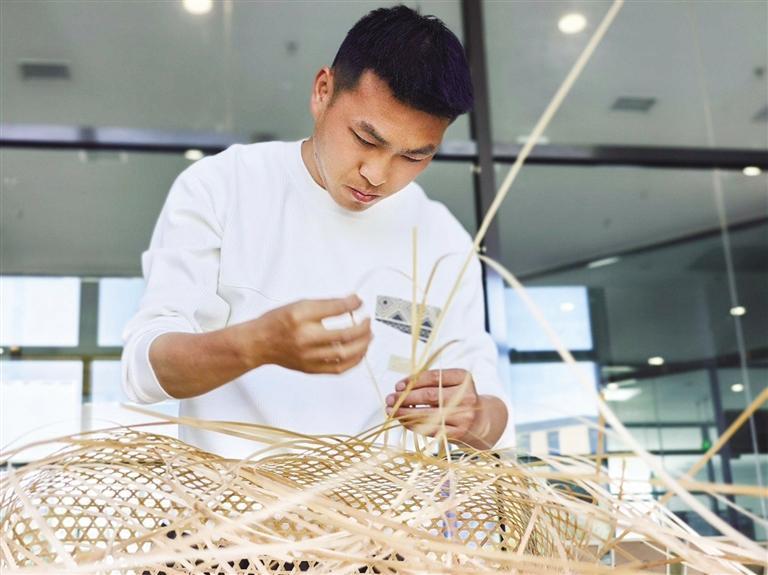 丁国川与编织的相遇,始于他在湖南怀化学院工业设计专业求学期间。接触到竹编、藤编等传统工艺时,他被“化草为宝”的创造力深深吸引。“一根竹条、一条彩带经过编织竟能成为兼具实用与美感的器物,这种传统智慧与现代设计的结合让我着迷。”丁国川回忆道。