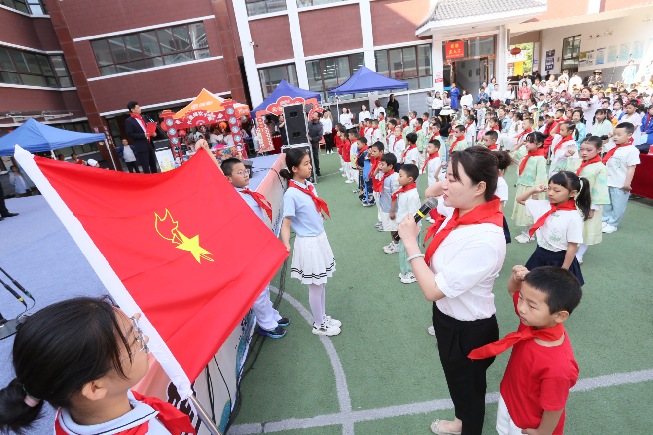 “我是中国少年先锋队队员,我在队旗下宣誓……”面向火红队旗,68名新队员右手握拳,用稚嫩而坚定的声音许下承诺。铿锵誓言回荡校园,彰显着新时代少年传承红色基因、争做共产主义事业接班人的决心。