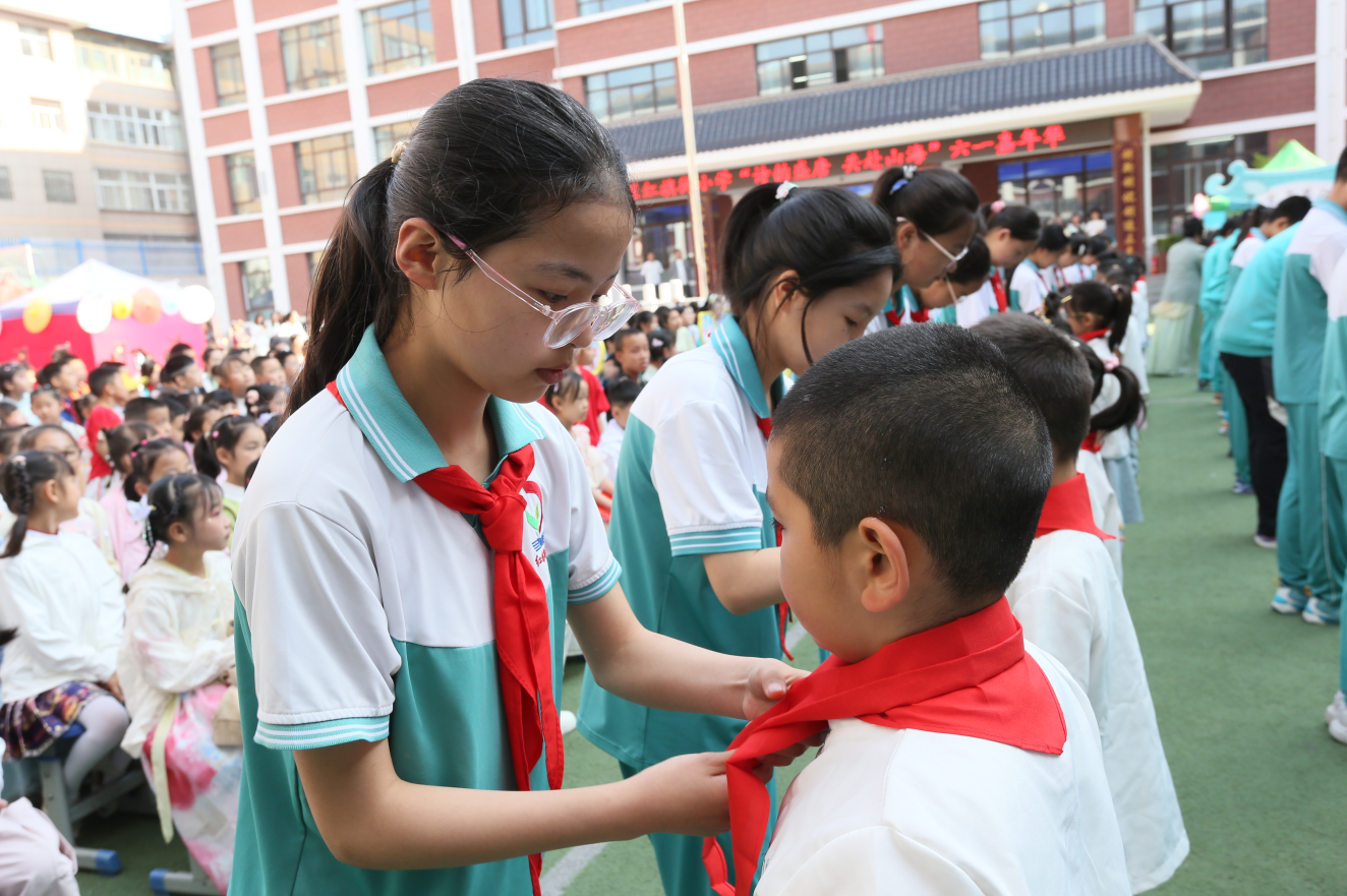 日前,平凉市崆峒区红旗街小学洋溢着喜庆氛围。在“六一”国际儿童节来临之际,学校隆重举行一年级少先队入队仪式,68名一年级学生光荣加入中国少年先锋队,以红领巾为礼迎接属于自己的节日。