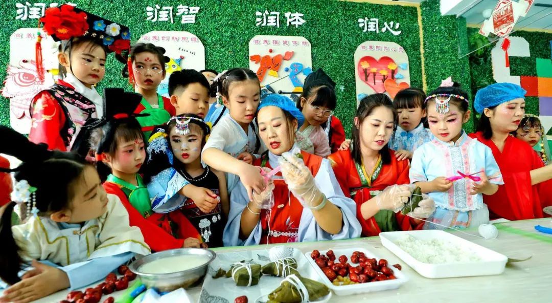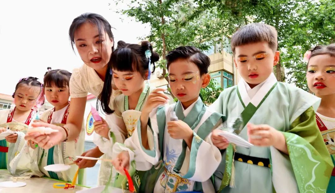 5月29日,张掖市甘州区第八幼儿园举办体验传统文化庆“六一”主题活动,孩子们展开“赛龙舟”、包粽子、猜灯谜、画团扇、装香囊等民俗文化活动,在感受传统文化的过程中迎接端午节与“六一”儿童节。(张掖市融媒体中心记者 王将)
