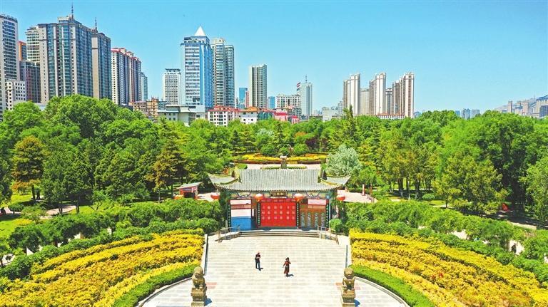 如今,它挨着黄河,藏在热闹的市区里,就像喧嚣城市里的一片宁静港湾。从空中俯瞰,小西湖公园因为地形狭长,就像一条绿色的绸缎,轻轻飘落在现代化的高楼大厦之间。