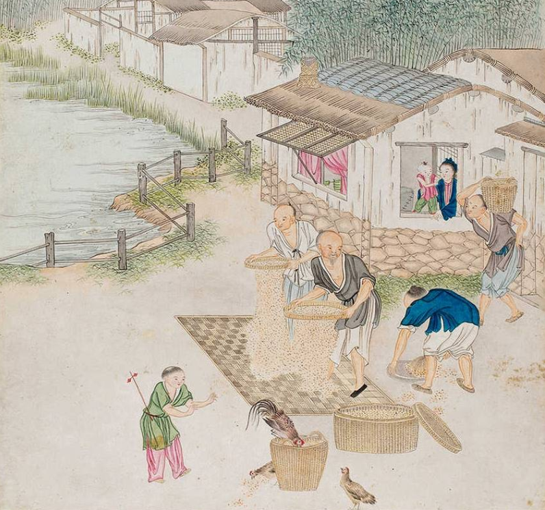 “笑歌声里轻雷动,一夜连枷响到明”,