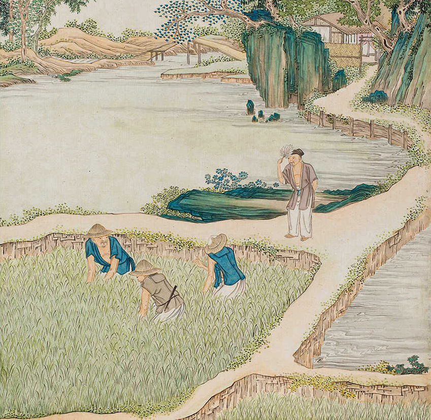两句诗以生动笔触描绘了舂米的辛劳场景。