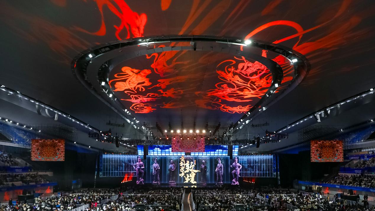 该剧最大的亮点在于创新性艺术融合,将非遗、科技、禅意、潮流、AI融入先锋音乐话剧,打破传统观演模式和传统舞台结构,巧妙植入演唱会、音乐剧、话剧、舞剧甚至是电影多种艺术表现形式,通过人工智能、影视化、动画真人融合等最新科技赋能舞台,实现“戏剧+影视+Live”多种艺术场域的融合,“创造”了既现代又满载中国审美的“敦煌”空间,让观众沉浸体验敦煌文化的辉煌与魅力。