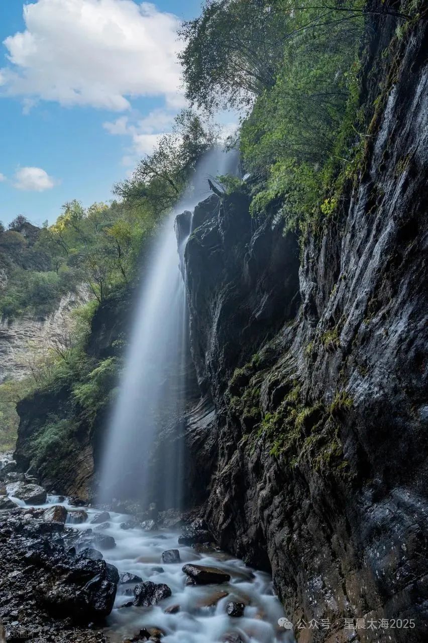 沟内的瀑布群,是大自然最得意的杰作。有的如白练垂空,从陡峭的崖壁奔腾而下,气势磅礴,飞花溅玉;有的则似轻柔的丝线,在微风中摇曳生姿,如梦如幻。站在瀑布之下,听水流轰鸣,感受水汽的轻抚,身心尽情与大自然相拥,疲惫与压力悄然消散。