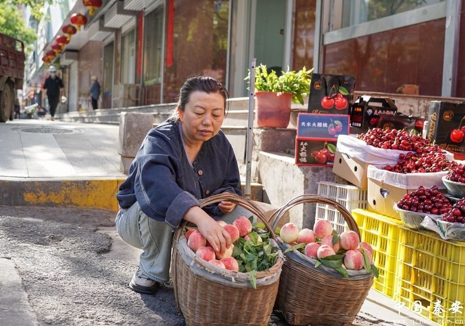 在秦安县大东巷,果农们一大早便将一颗颗娇艳欲滴的蜜桃整齐地摆放在摊位上,从摊位前走过,浓郁的桃香扑鼻而来。