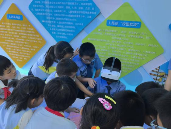 最让学生们兴奋不已的,当属法治VR体验环节。戴上特制的VR眼镜,孩子们瞬间“穿越”到一个个虚拟场景中。他们“置身”于校园角落,亲眼目睹一场欺凌事件的发生;又仿佛“来到”网络世界,直面各种潜在的风险与陷阱。在沉浸式的体验中,孩子们真切感受到违法行为带来的危害,也更加深刻地认识到法律的威严与力量。“太神奇了!我感觉自己就在现场一样,以后我一定要做个遵纪守法的好孩子!”一位小朋友摘下VR眼镜后,激动地说道。