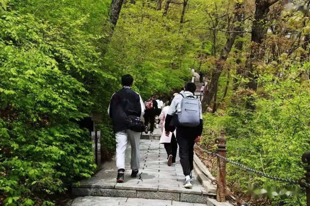 沿着后山石阶缓步而上,两侧古松挺拔耸立,层层叠叠的枝叶织就天然的遮阳伞。阳光透过缝隙,在石阶上勾勒出斑驳的光影,随风摇曳,仿佛在诉说着岁月的故事。山风裹挟着草木的清香迎面扑来,带着山涧的湿润与清凉,轻轻拂去额角的汗珠,燥热瞬间消散无踪。