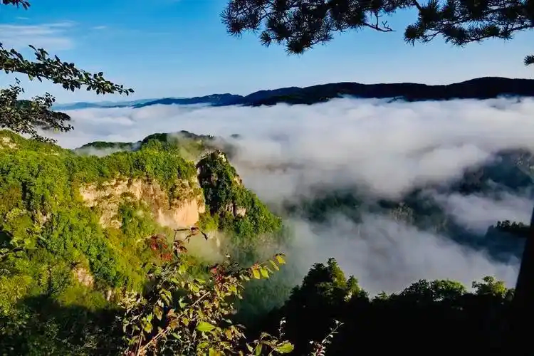 站在皇城,登顶远眺,整个山尽收眼底。云海翻涌,宛如波涛汹涌的大海,与苍翠的山峦相映成趣。此时的风更为通透,裹挟着天地间的灵气,吹散了攀登的疲惫,也吹散了心中的尘埃。站在山巅,仿佛与天地融为一体,尘世的喧嚣与燥热都被抛诸脑后。
