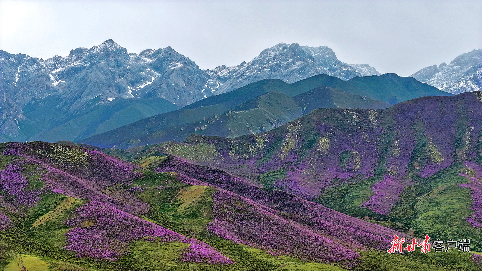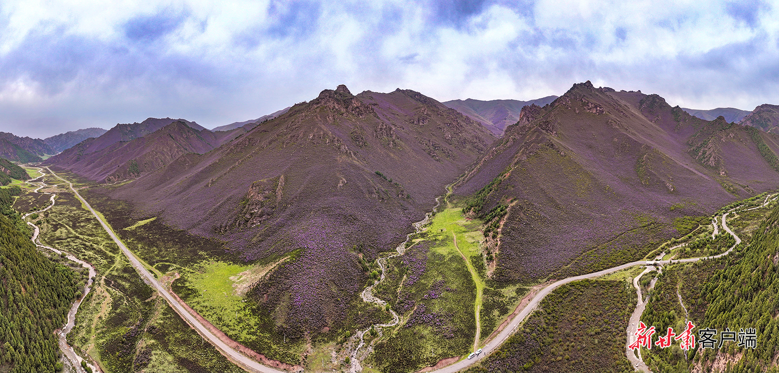 6月8日,天祝县内的高山杜鹃(俗称香柴花)进入盛花期,数十万亩高山杜鹃组成了一片片花海,将山峦装点成如梦似幻的色彩,吸引众多游客前来拍照留念。