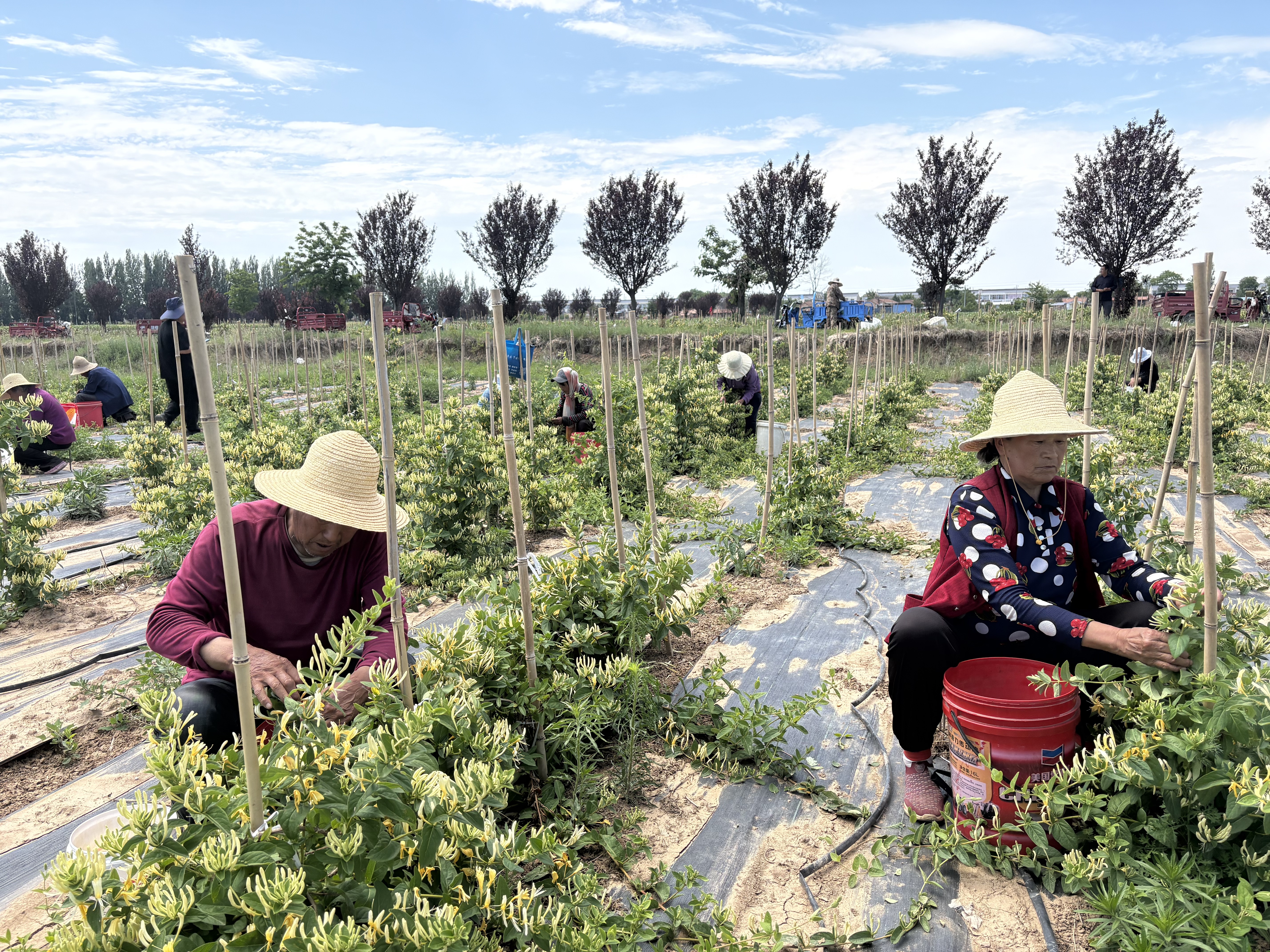 金银花花期绵长,可持续绽放并实现多次采收。这片金银花田里,村民们每年的务工时长可达10个月之久,平均每天有四十余人驻守田间,锄草、浇水、施肥、修剪……每临采摘时节,田间忙碌的身影则更显密集。“自金银花种植基地建成以来,我们程家塬村股份经济合作社同企业紧密合作,通过流转土地、提供劳务用工等,既增加了村集体经济收入,又让群众实现了家门口务工的愿望。”星火乡程家塬村股份经济合作社理事长白小平介绍道。