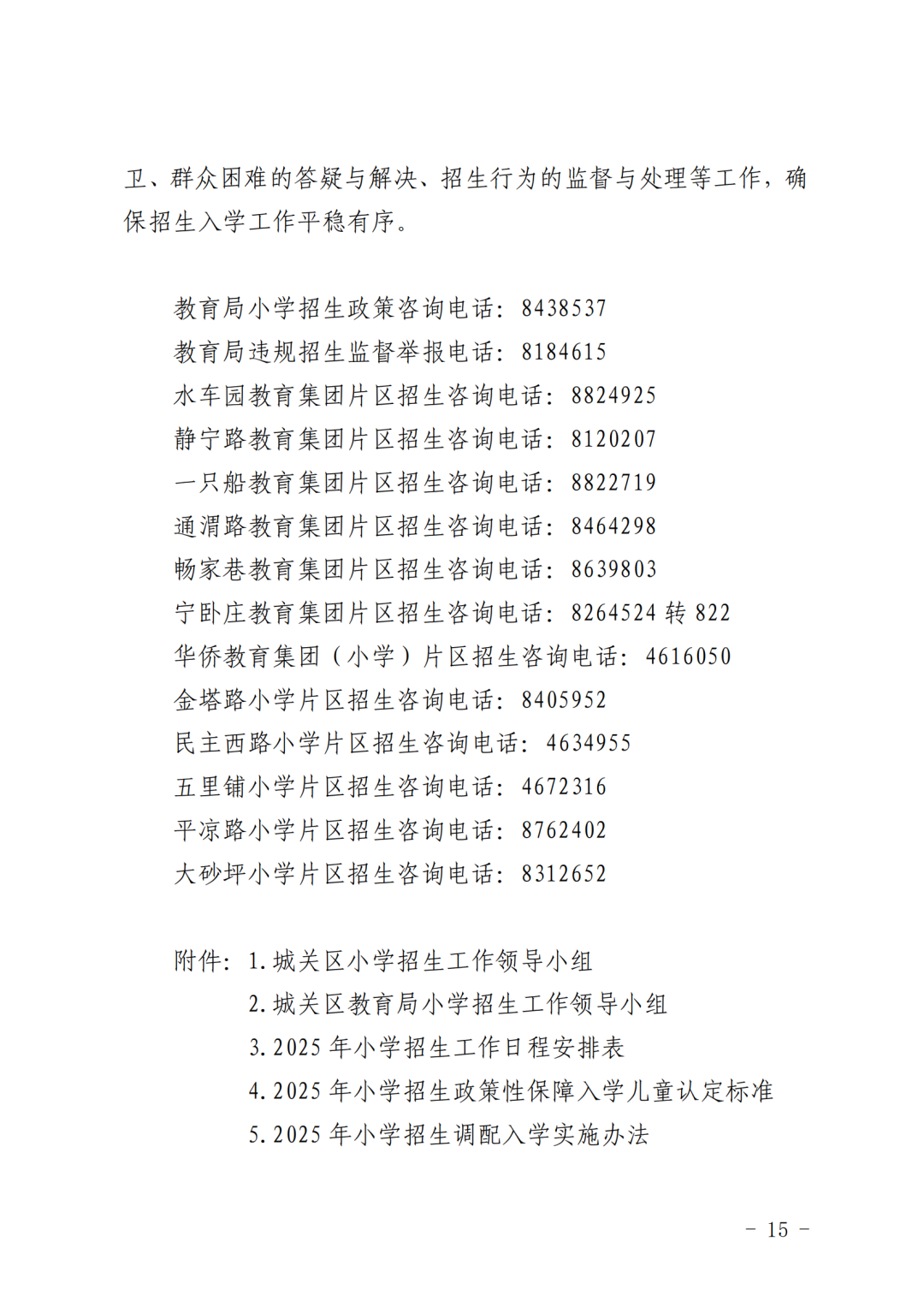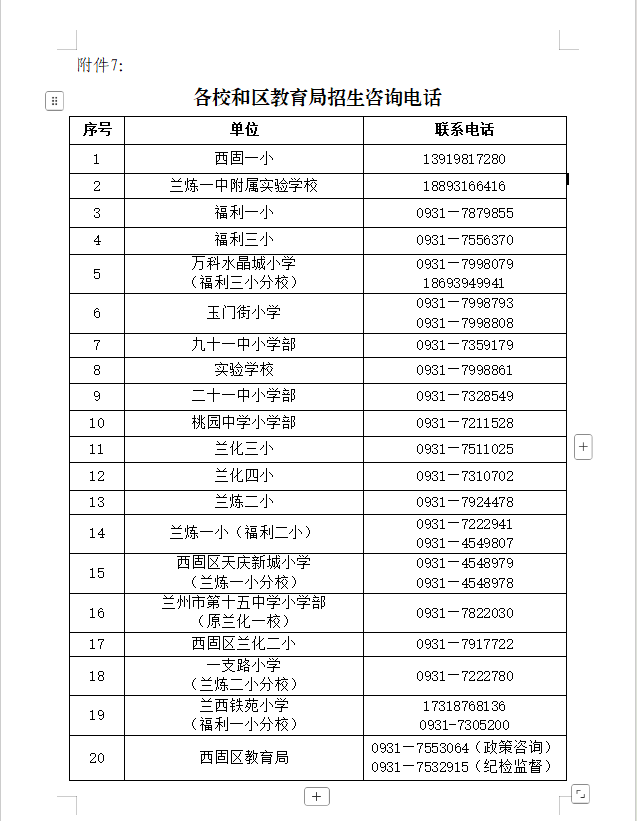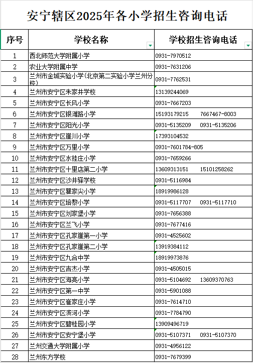 2025年七里河区小学一年级招生各校咨询电话一览表