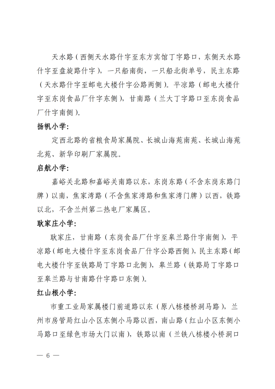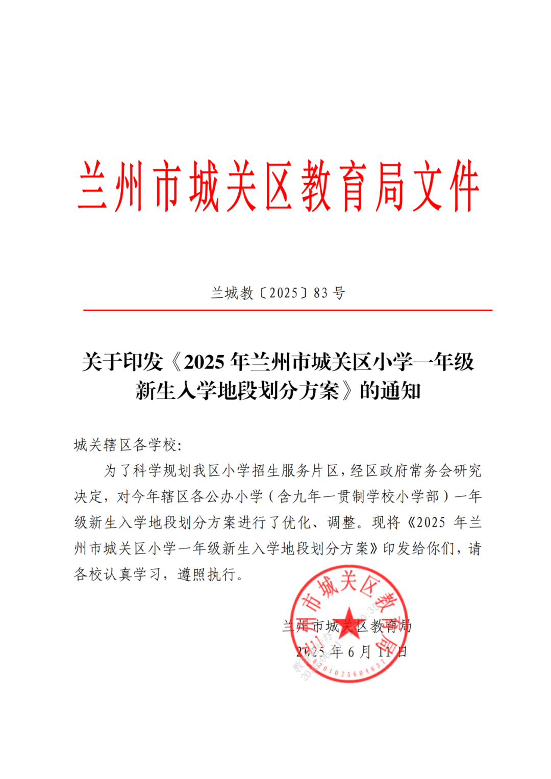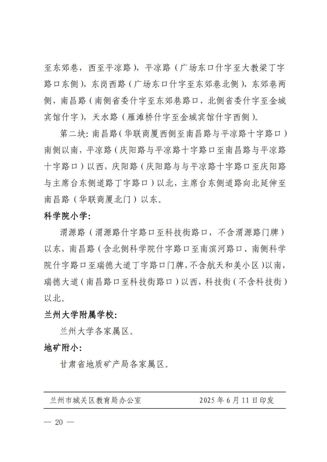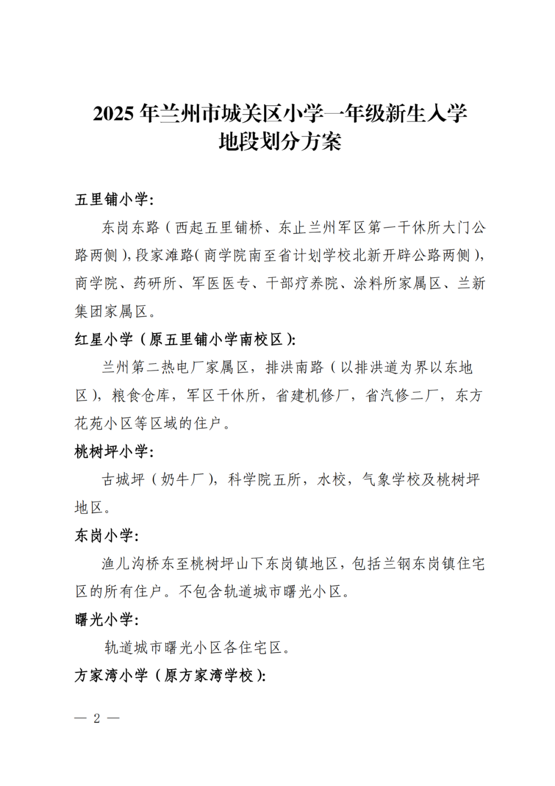兰州市城关区教育局官方公众号:2025年兰州市城关区小学一年级新生入学地段划分方案