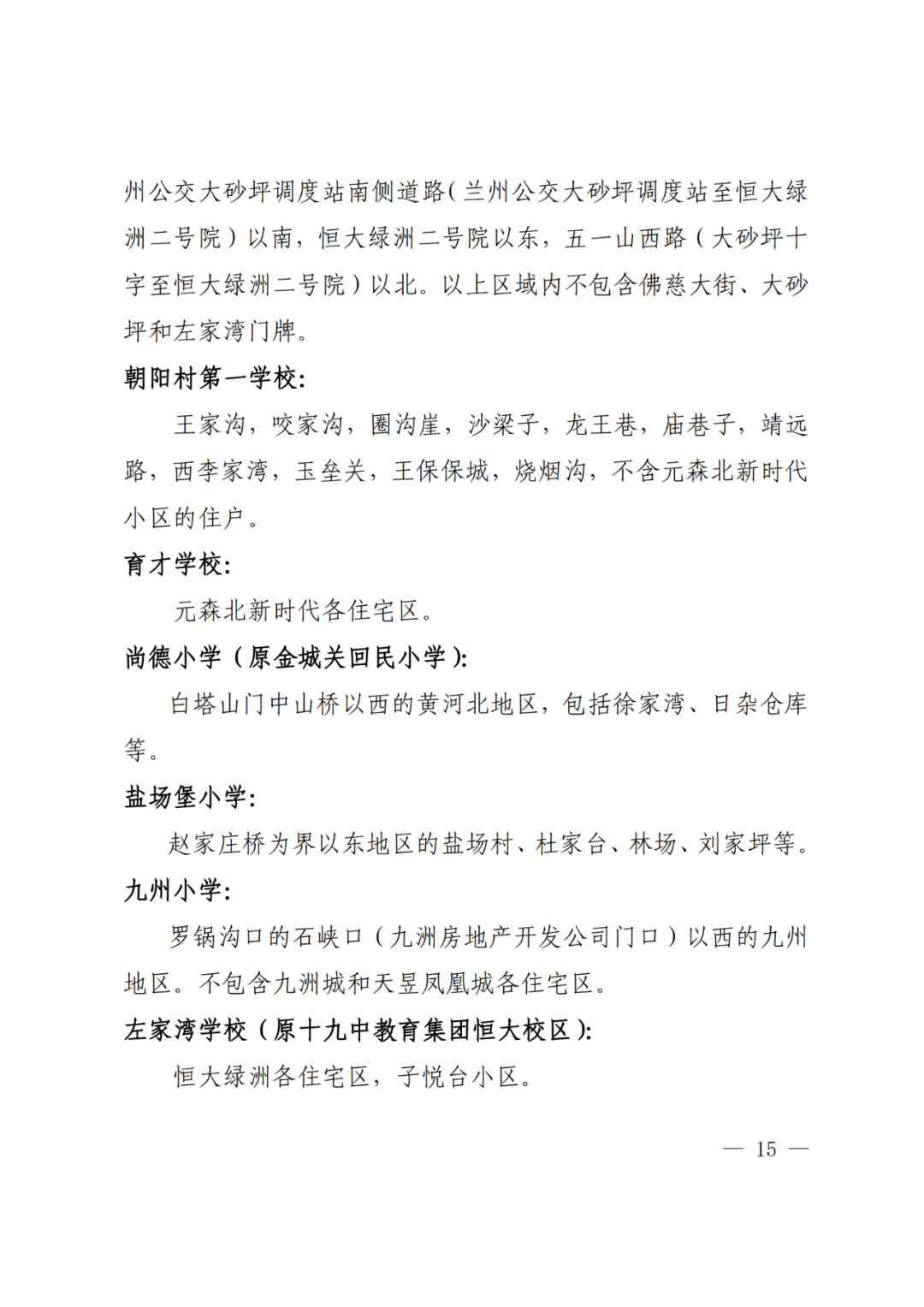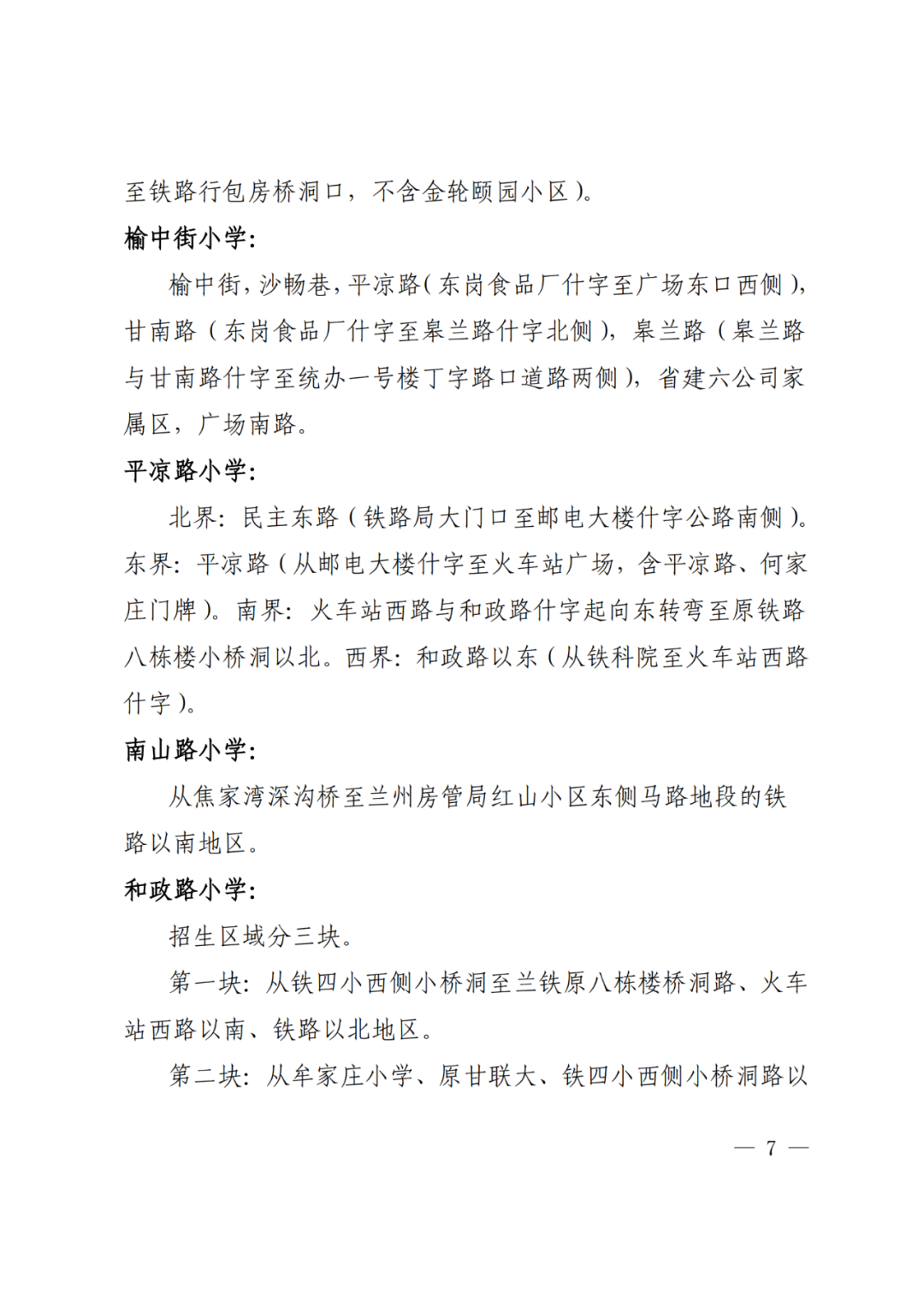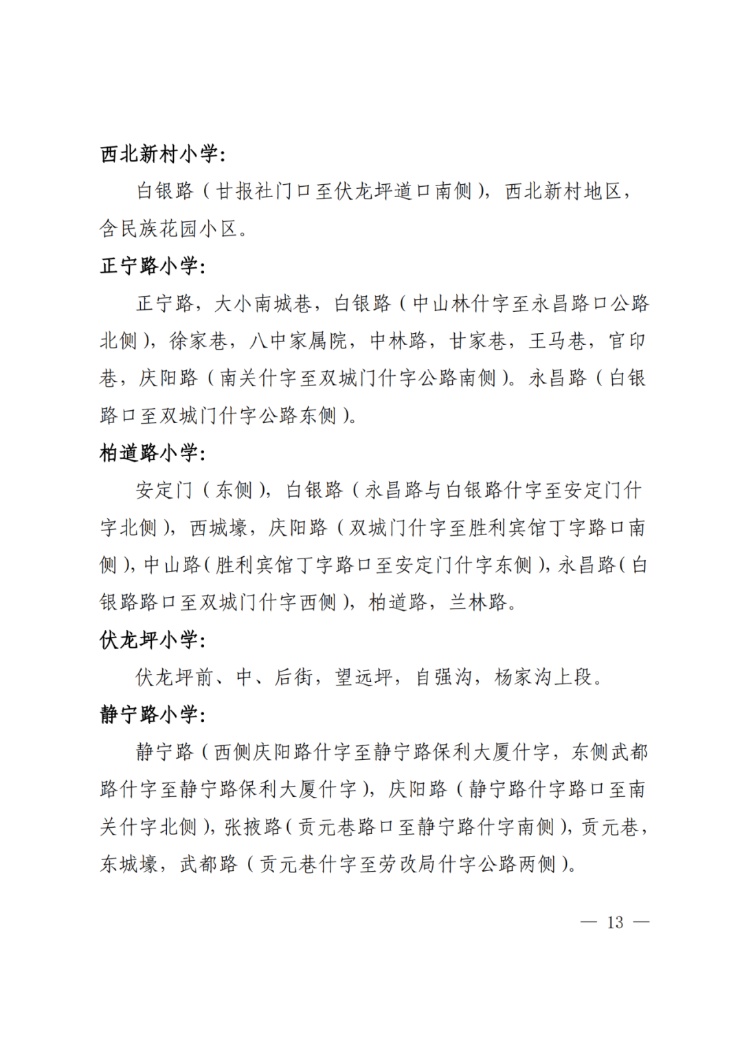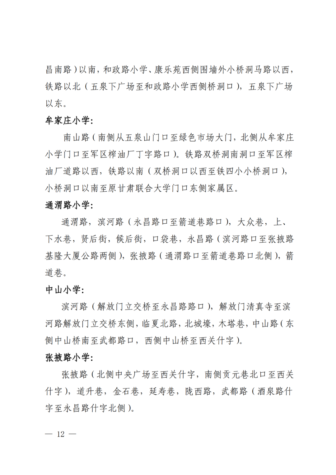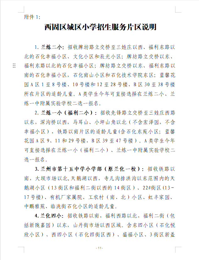 兰州市城关区教育局官方公众号:2025年兰州市城关区小学一年级新生入学地段划分方案