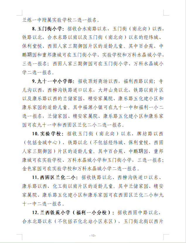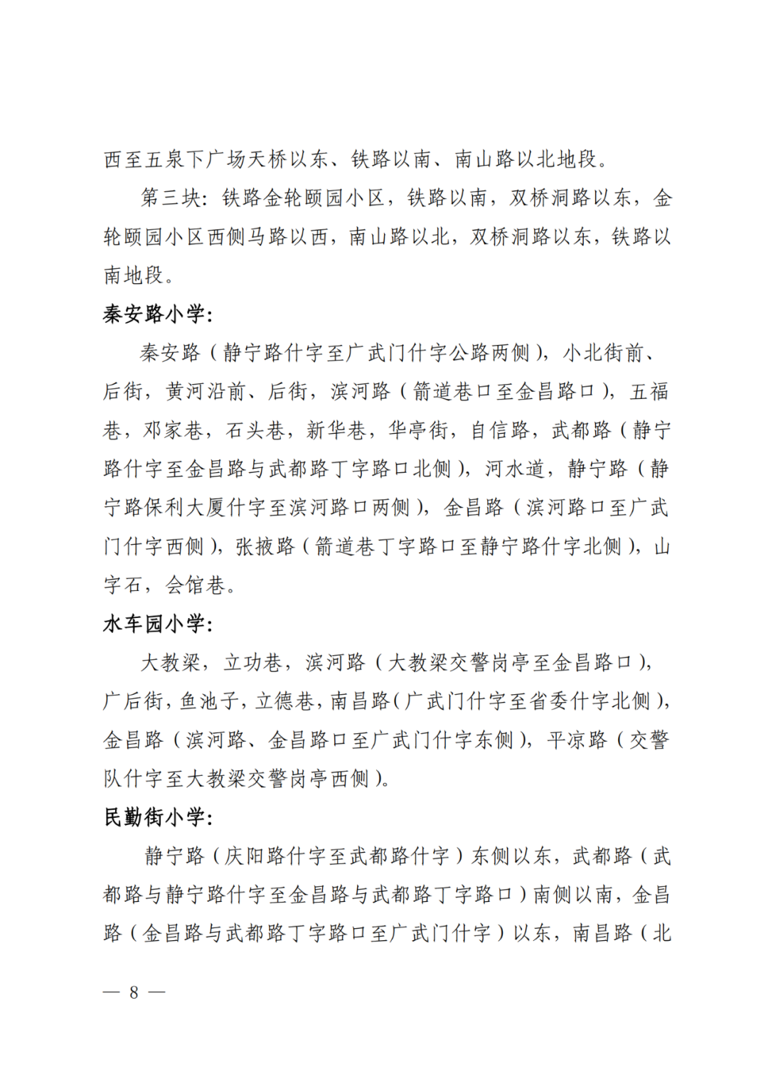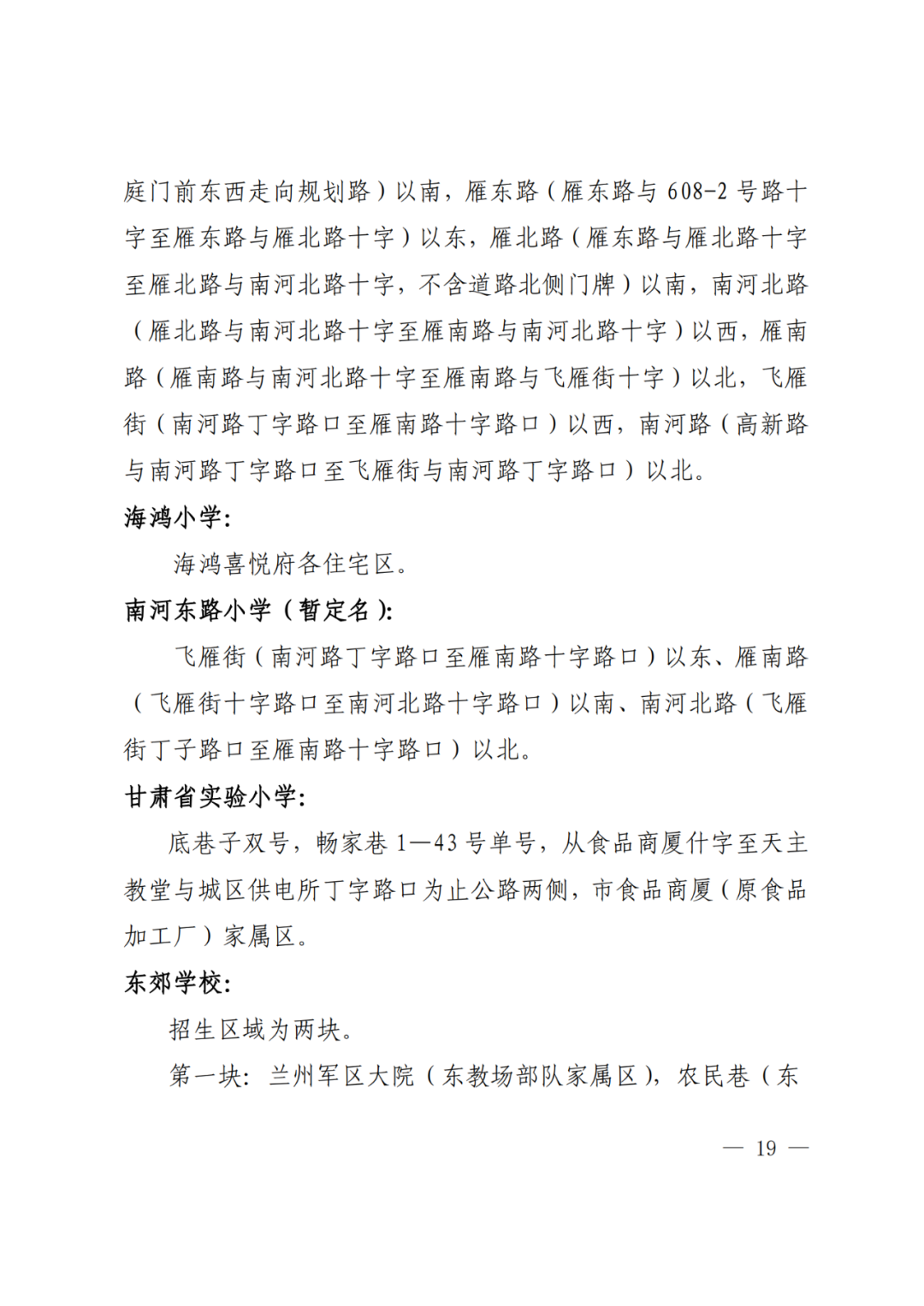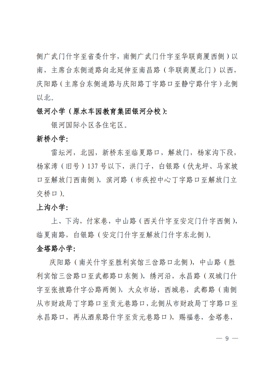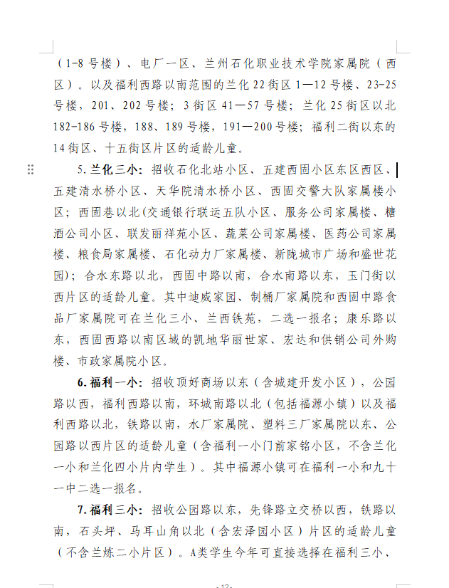 兰州市城关区教育局官方公众号:2025年兰州市城关区小学一年级新生入学地段划分方案