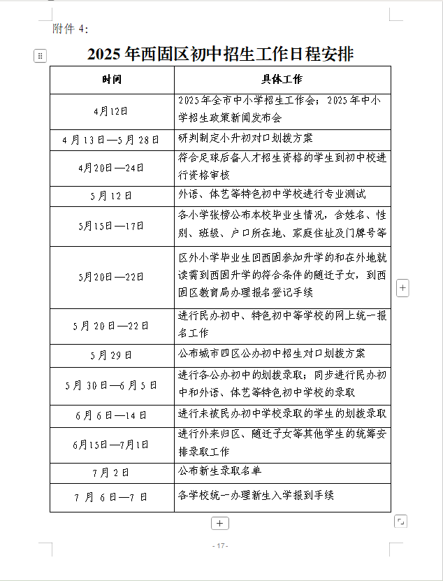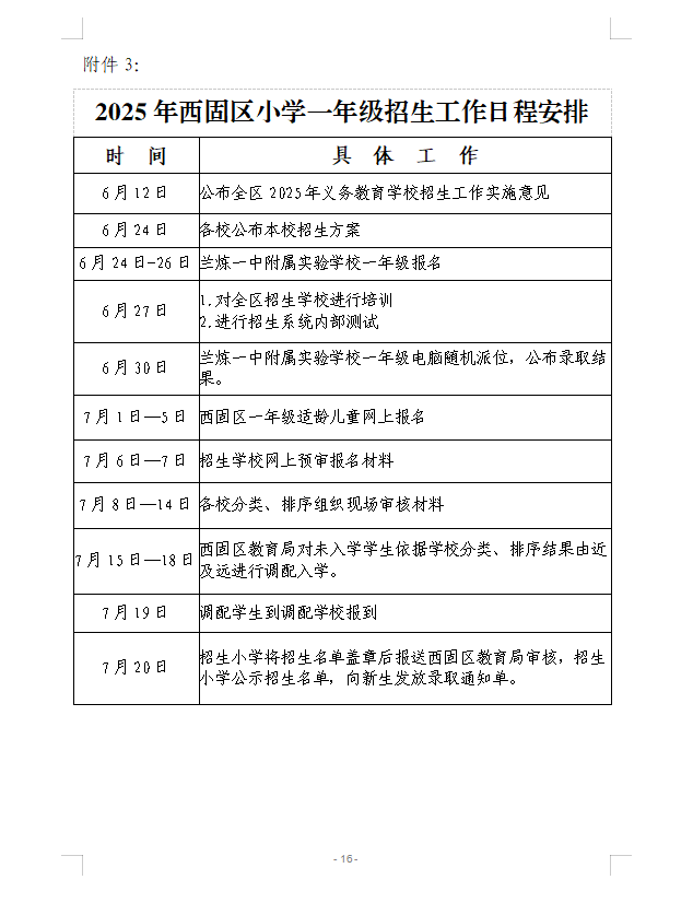 我区初中招生工作严格按照市教育局《兰州市2025年义务教育招生入学工作实施意见》(兰教发〔2025〕33号)文件规定时间组织实施。