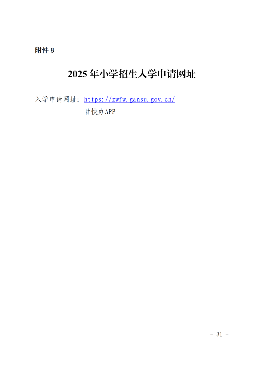 2025年一年级招生系统登录网址:甘肃政务服务网(https://zwfw.gansu.gov.cn)或“甘快办”APP