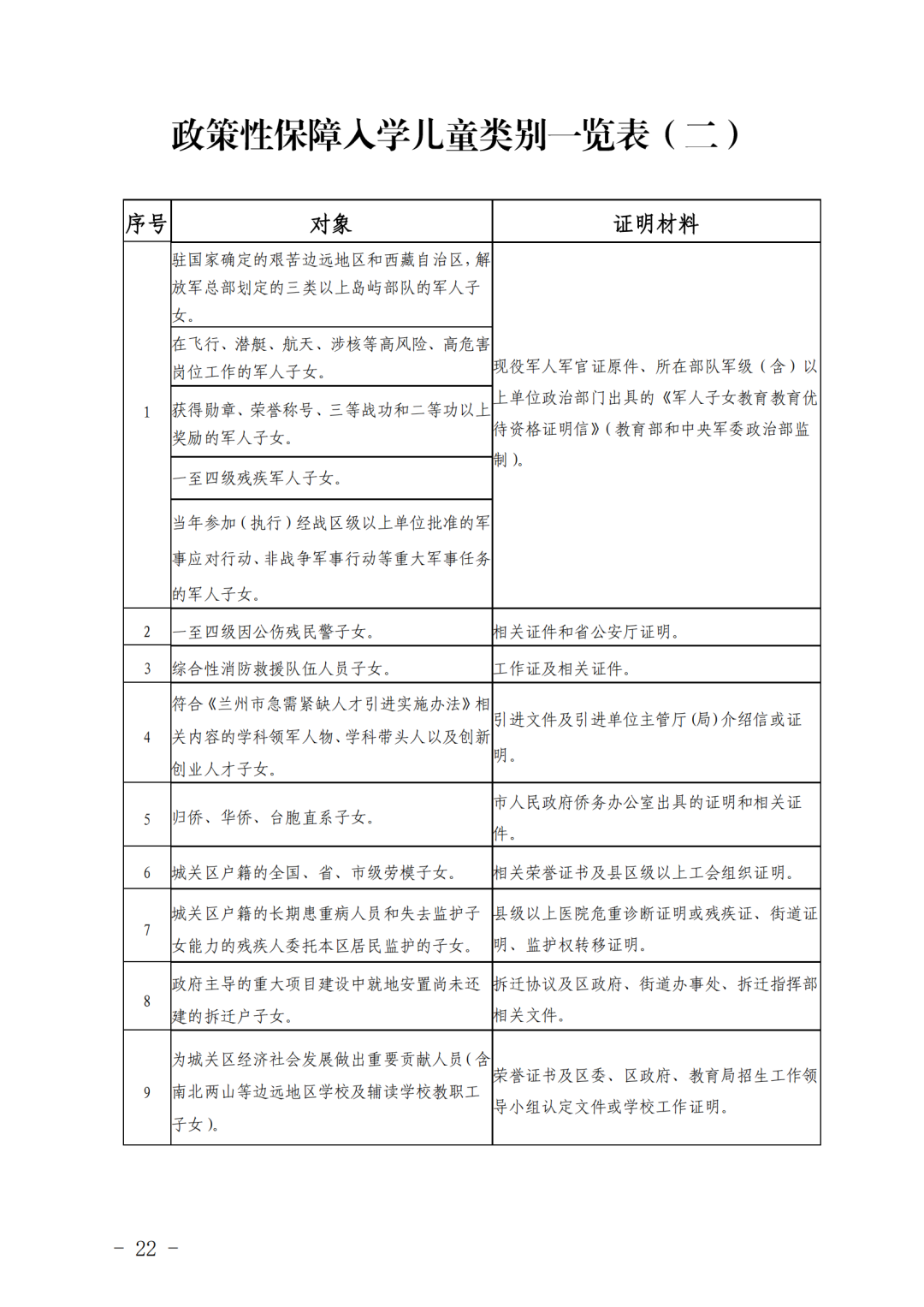 1.入学条件:按照本《方案》到片区学校审核资料,适龄儿童在甘肃省政务网招生入学一件事报名成功后,对进一步提供佐证材料需准备本人户口簿、父母或其他法定监护人房产证或购房合同及机打发票、儿童预防接种证等基本证明材料原件及复印件,情况特殊的还要准备(在兰州市不动产登记事务中心网点打印)有(无)房证明、结婚证、出生证、户籍冻结证明等备用材料原件及复印件。