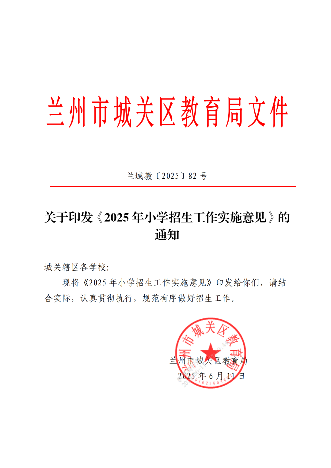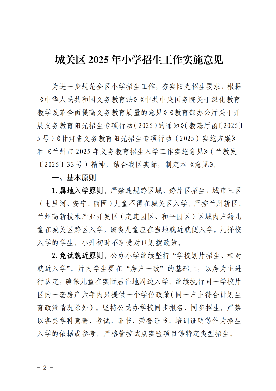 根据《兰州市2025年义务教育招生入学工作实施意见》(兰教发〔2025〕33号)文件精神,结合我区实际,现就做好本区今年义务教育学校招生工作提出如下意见。