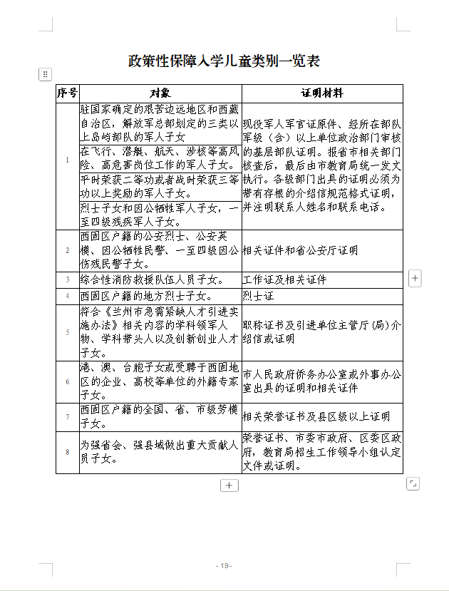 1.招生对象。招收年满6周岁(2019年8月31日前出生)的安宁区户籍儿童和符合条件的流动人口随迁子女。