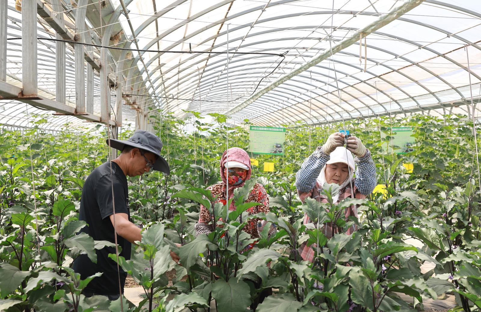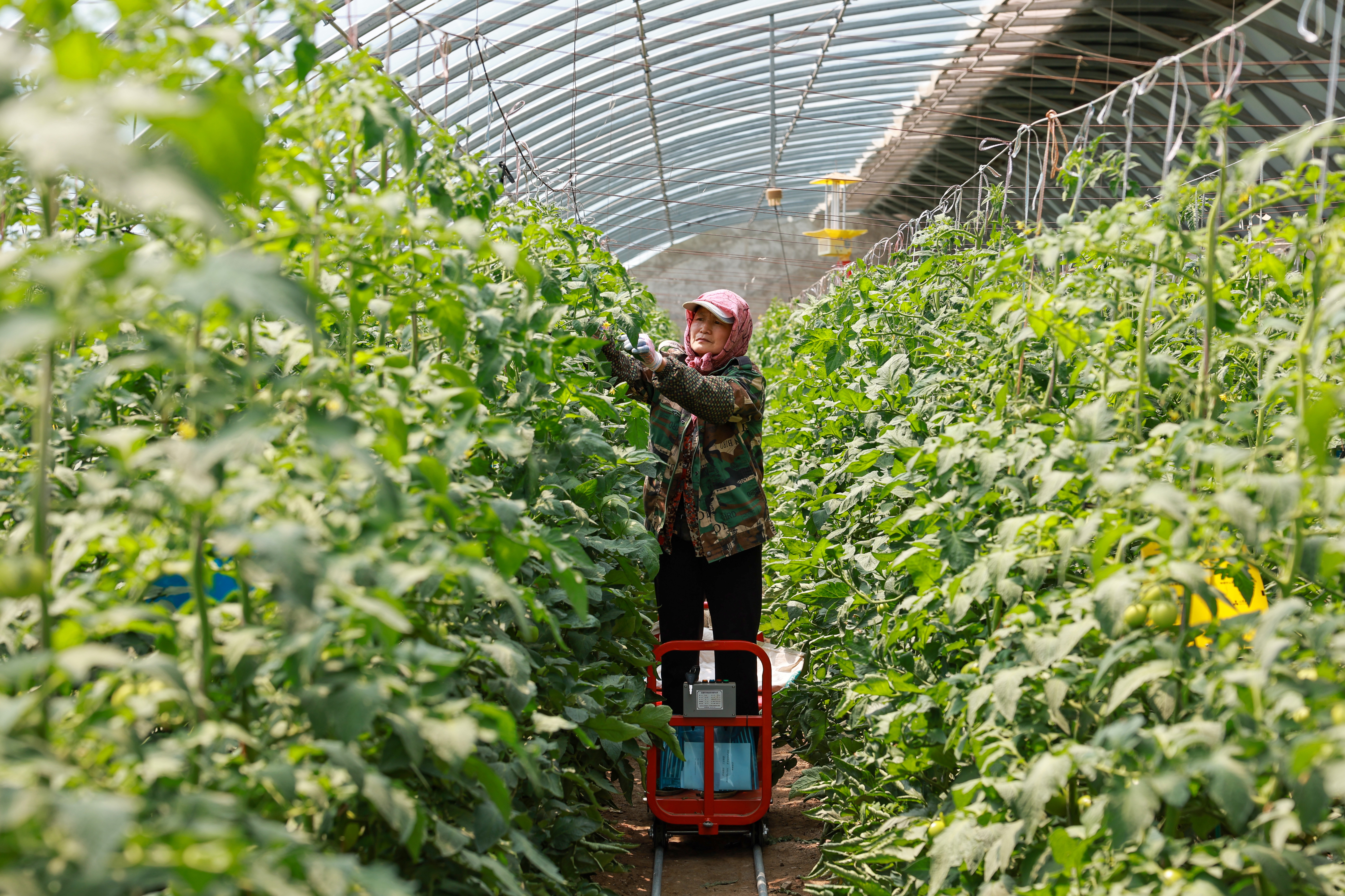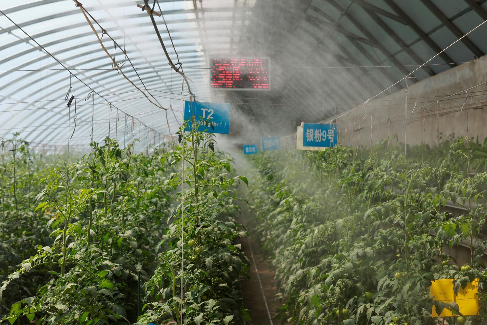 在县瓜菜集约化育苗及生态健康农业科技示范园内,一棚棚茄子、西红柿等蔬菜长势正旺、格外喜人,技术人员正通过手机,远程操控温室的卷帘、放风、喷灌等设施,工人们乘坐轨道运输车穿梭在大棚中,开展吊秧、整枝等工作,智能显示器上实时跳动着棚内空气温度、光照强度、土壤温度及盐碱度等各项数据。随着大棚自动化程度逐步提升完善,犹如一位“农业智能管家”,帮助技术人员根据数据变化,及时精准地调整种植策略。
