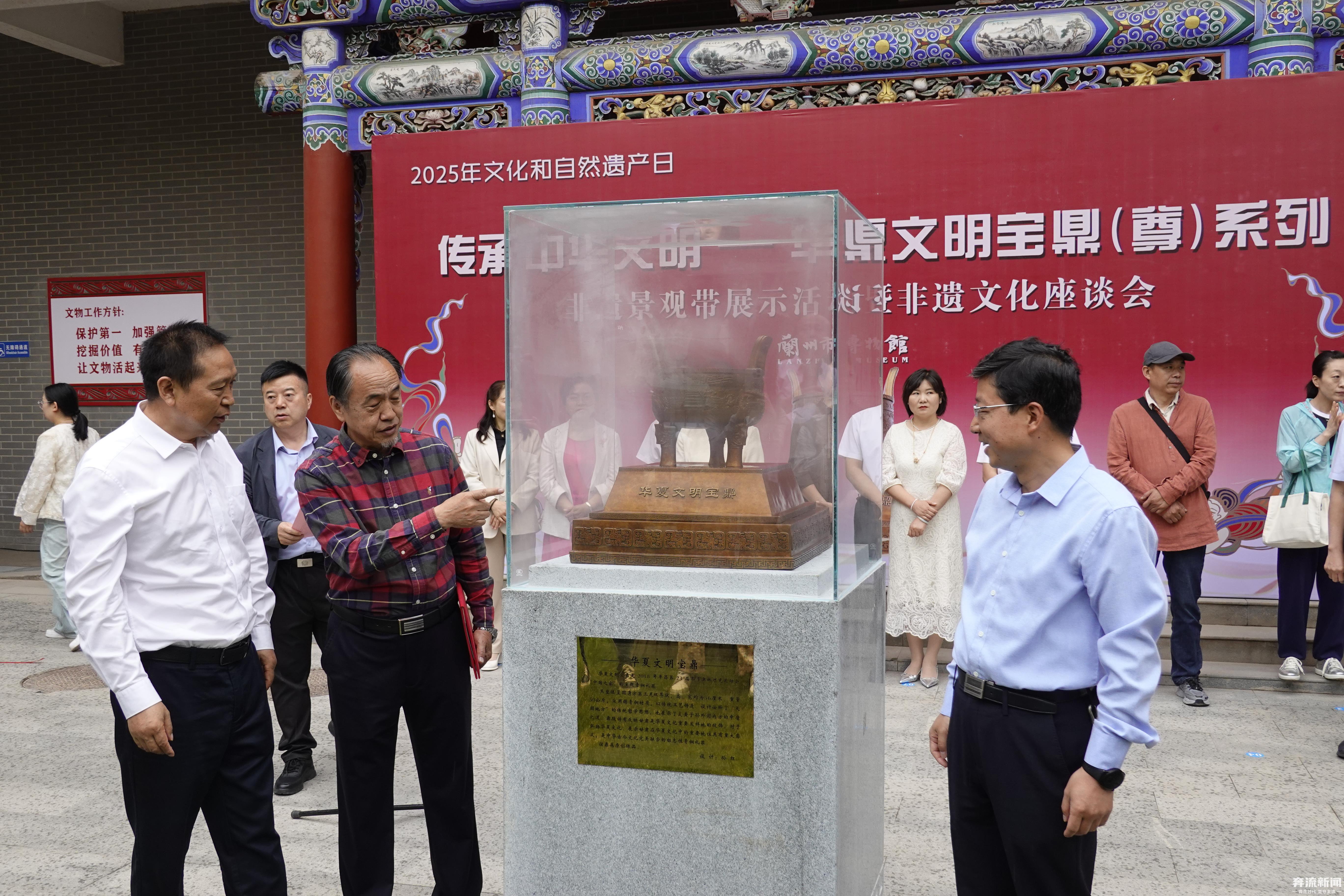 奔流新闻讯(记者 赵鑫远)6月14日“文化和自然遗产日”当天,兰州市博物馆“传承中华文明—华夏文明宝鼎(尊)系列”非遗景观带正式揭幕,该景观带由当代双奥艺术家、国家一级美术师孙红无偿捐赠的国家级、世界级奥运赛事所用宝鼎(尊)系列组成,共五件原创作品,融合奥运精神、中华文化与陇原记忆珍藏工程,在博物馆院内设置5个展位长期展示,弘扬甘肃人文精神,展现兰州城市形象,成为独特的文化史书和开放式课堂。