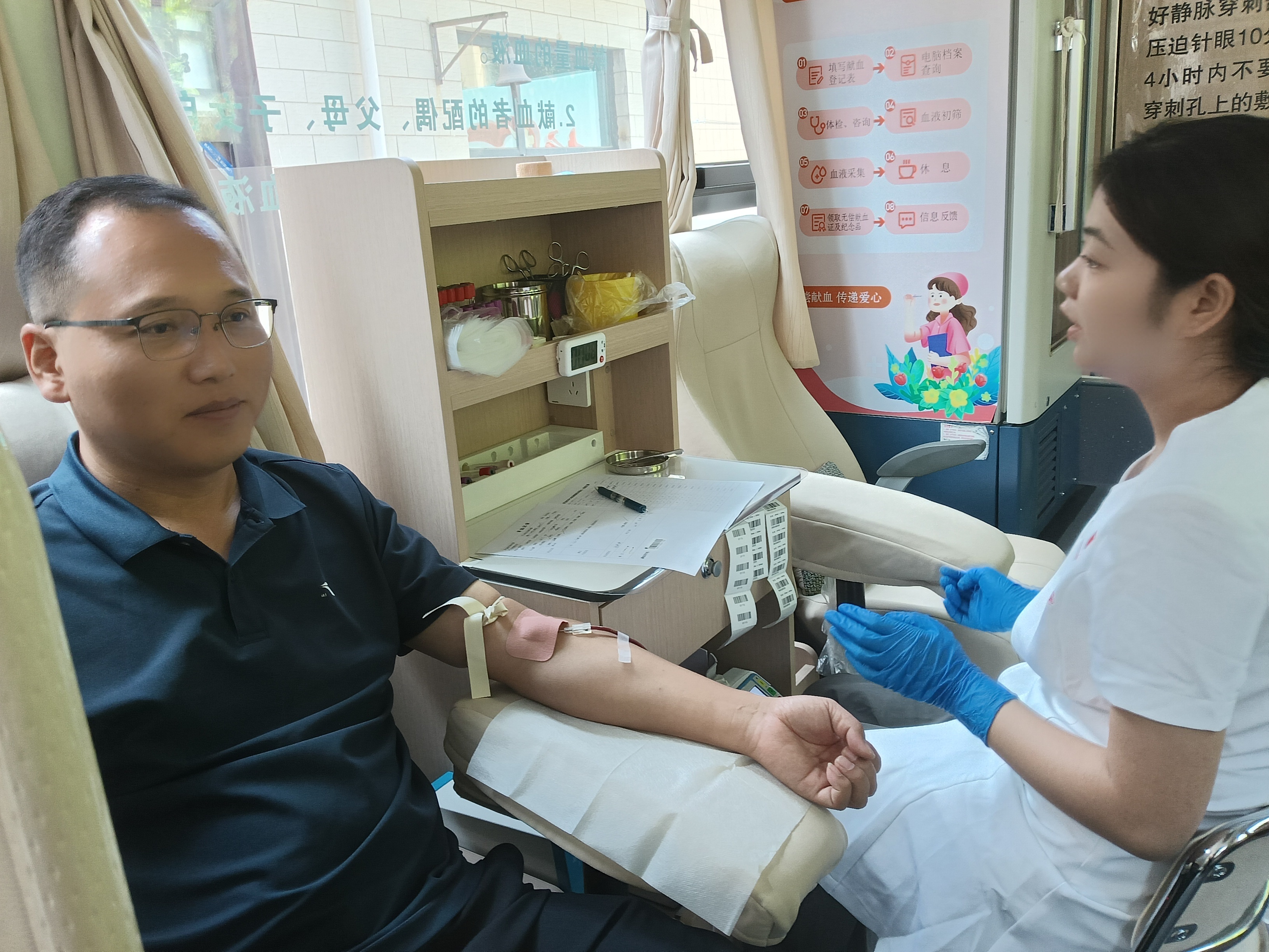 “我是从2012年第一次开始献血的,这么些年一直坚持到现在献血24次,采血量达到9600毫升,现在采血的这些设备都是一次性的,都比较正规。献血者将来如果需要用血可以免费双倍用血,直系亲属可以等量用血。”献血志愿者马文俊介绍。