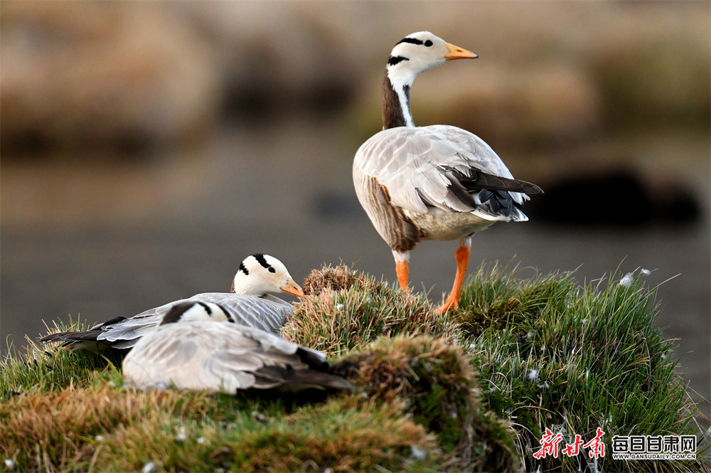 原标题:肃北盐池湾湿地迎来斑头雁“萌娃”觅食季