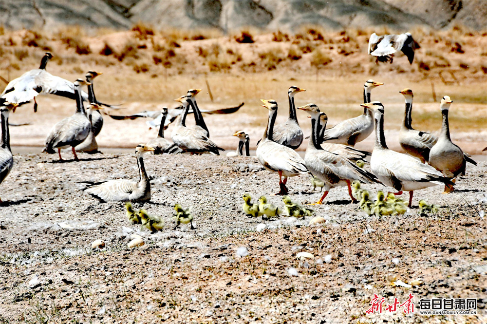 值得一提的是,今年生态保护成果显著,仅斑头雁就有上千只幼鸟顺利孵化。这些新生的小生命,不仅是湿地生态环境改善的生动注脚,更预示着这片土地正焕发出前所未有的生态活力,也为肃北县生态保护事业交出了一份亮眼的答卷。