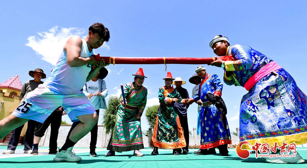 6月14日,张掖市肃南裕固族自治县明花乡“石榴花开共欢歌·同心筑梦共富裕”文化展演暨农牧民运动会火热开场。裕固族、藏族、蒙古族群众身着盛装,开展民族歌舞文艺汇演、青年歌手大赛和和独具特色的民族传统体育竞技——拉爬牛、顶杠子、女子拔棍、射箭等。陕西、青海、内蒙古等地近万名游客齐聚于此,共赏大漠风情,感受民族文化魅力。