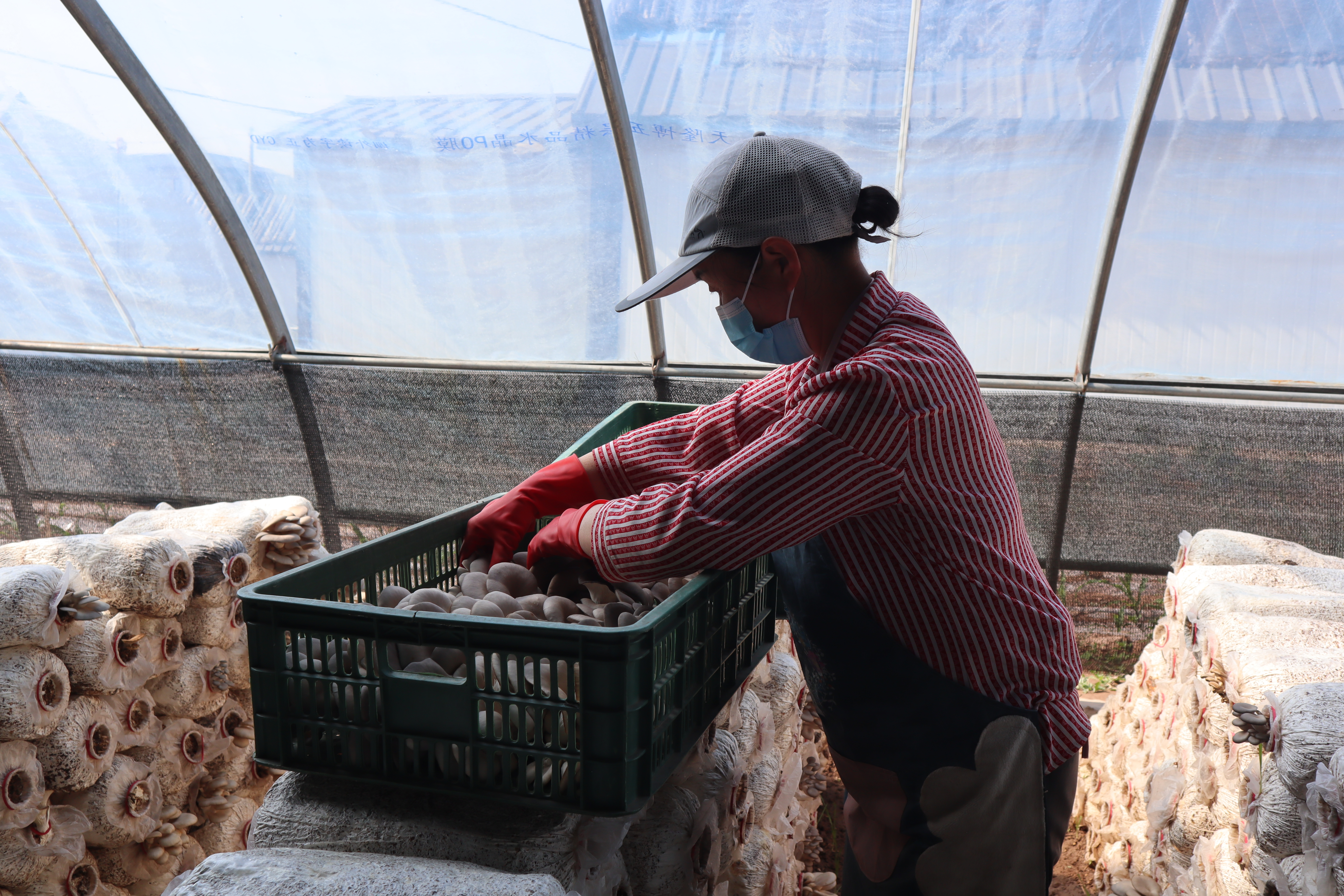 务工人员杨金花说:“现在正是蘑菇采收的时候,目前这茬蘑菇棒一天能采400到500篮子,主要销往咱们平凉的新阳光市场以及各大商超。”