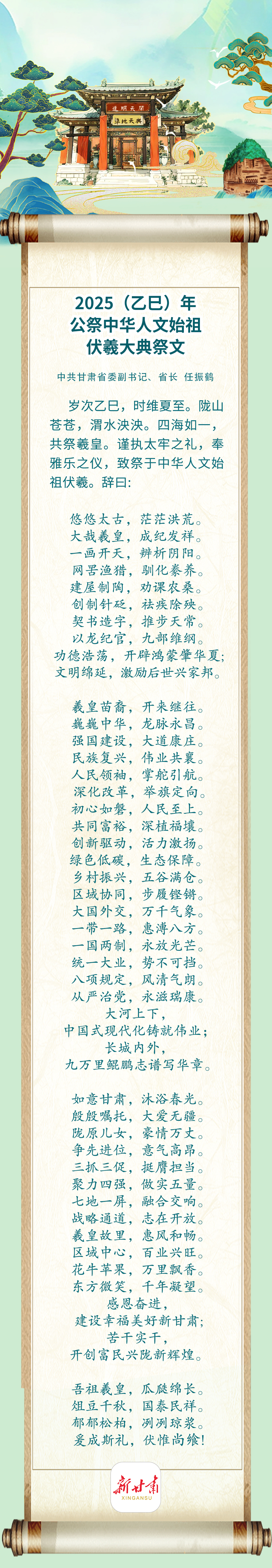 新甘肃:【2025年公祭伏羲大典】恭读祭文 感怀伏羲功绩