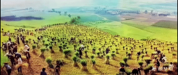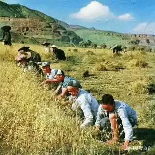 1961年,临洮县城关人民公社北关生产大队的队员收获夏田。甘肃日报记者 郑铁林