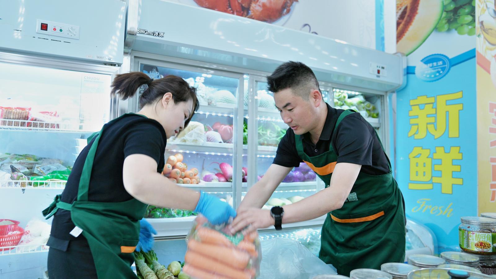 寻找合适的门面、装修、进货……两人说干就干,忙得不可开交。2020年3月,第一家“甜甜蔬菜”店在新区开业。