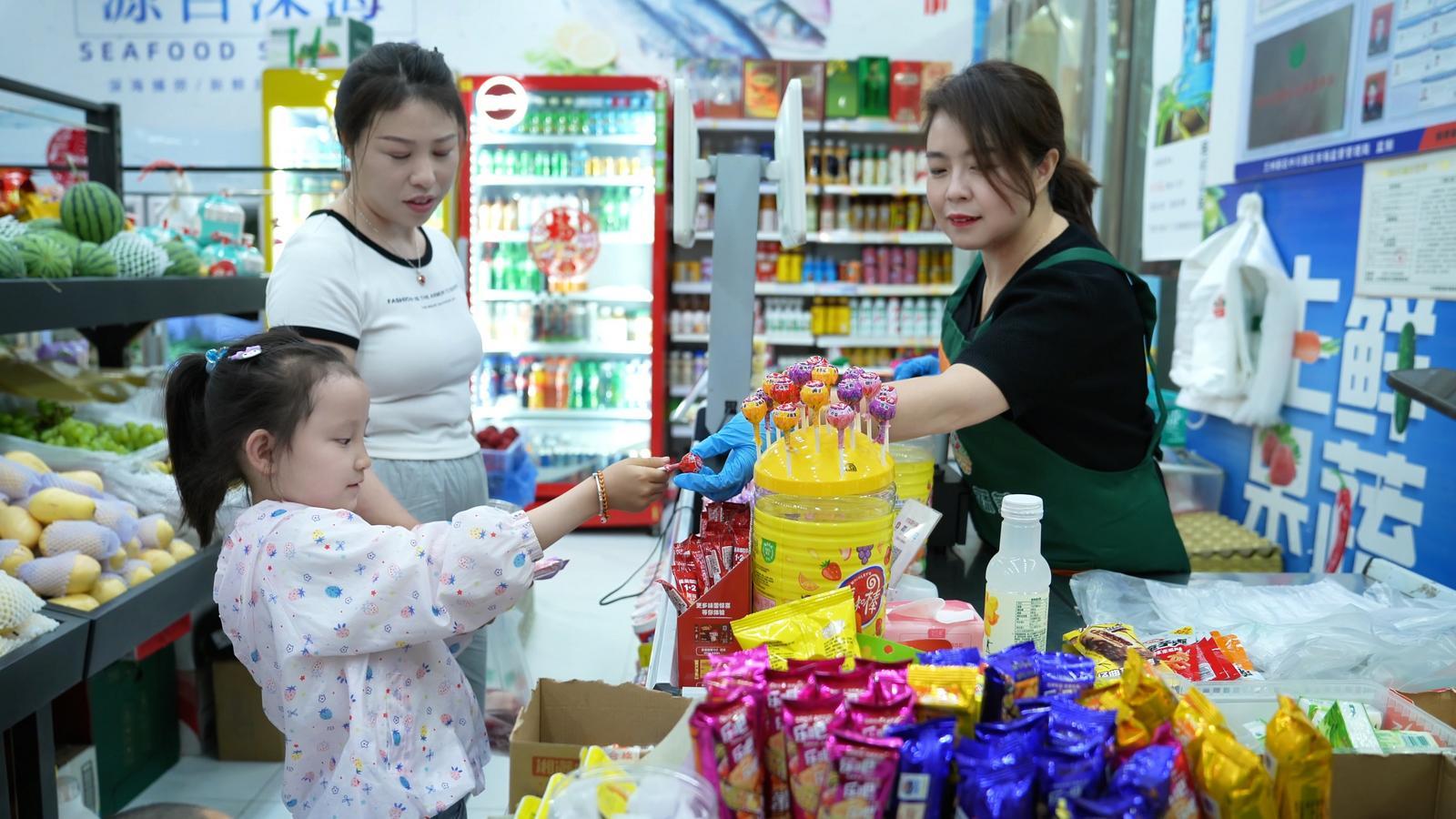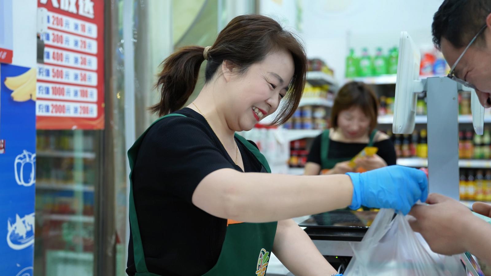 店里忙活的,大多是附近小区的居民。张姐以前在家带孩子,现在成了店长,手脚麻利得很:“在这店干得挺好,离家近,能顾上家,一个月还能挣四千多元。”两口子听着,心里也甜丝丝的。