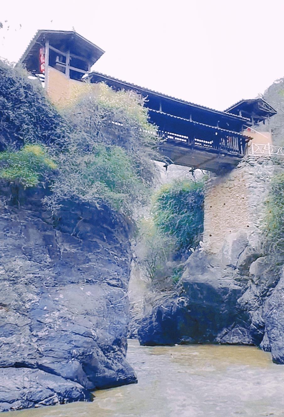 据史料记载,三国时期的阴平桥为榫卯结构的叠木伸臂廊桥。它巧妙地利用两岸天然石崖作为基座,那形如龟背的石崖,稳稳地托举着桥梁,使其宛如“螭龙凌空”,横跨在汹涌的江面之上,正如史载所云“跨巨岸之汹涛,横绝壁之峭岩”。