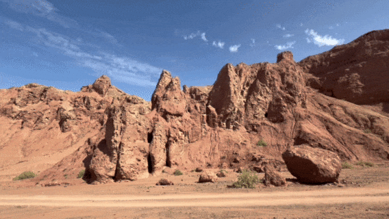 景区内,山峰矗立,曲径通幽,仿佛是大自然这位神秘的艺术家精心打造的迷宫。这里的山石奇特,高低起伏,错落有致,每一块石头都仿佛在诉说着岁月的故事。山体由红色砂岩石构成,色彩艳丽,阳光洒下,山体闪耀着迷人的光彩,如同一幅绚丽多彩的画卷。
