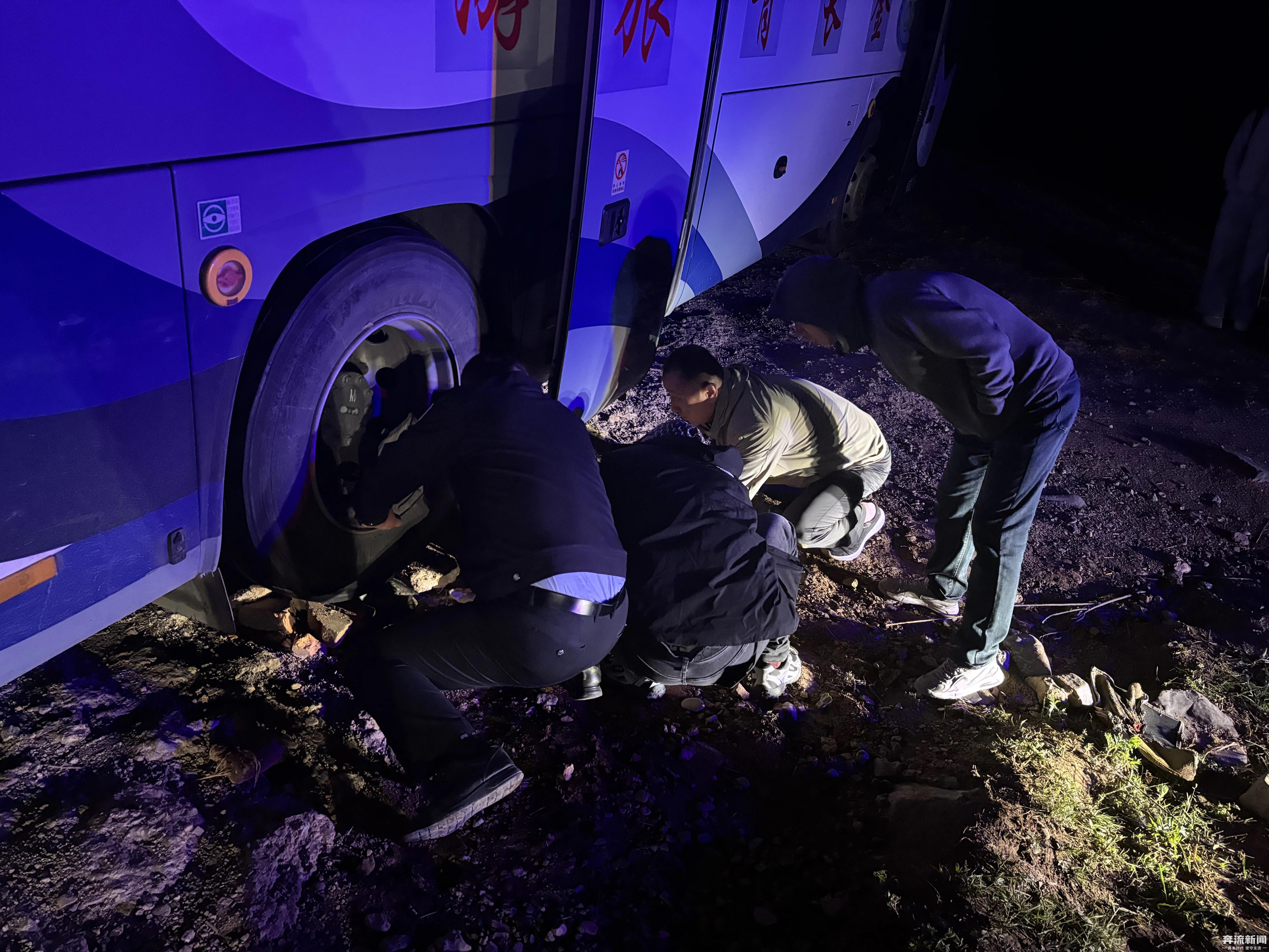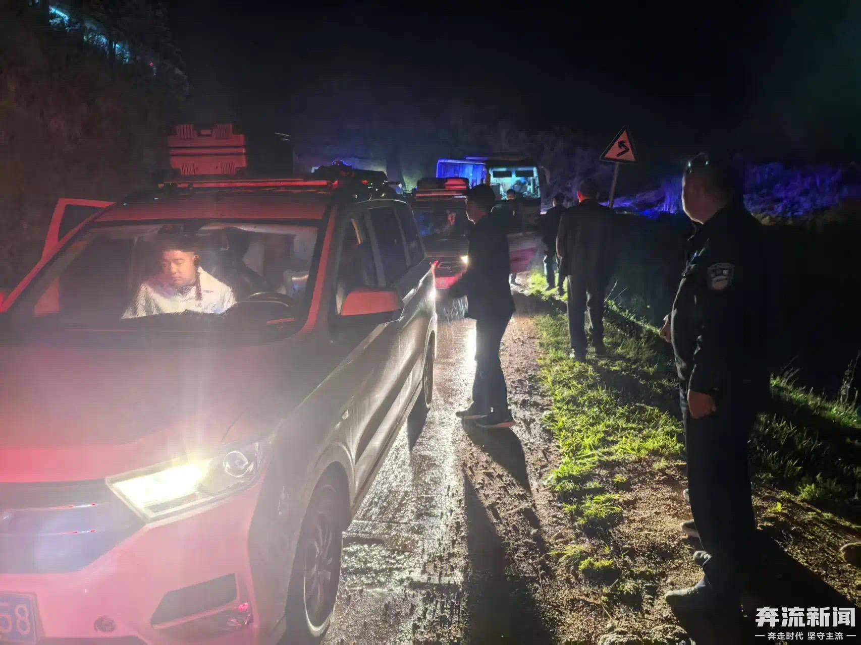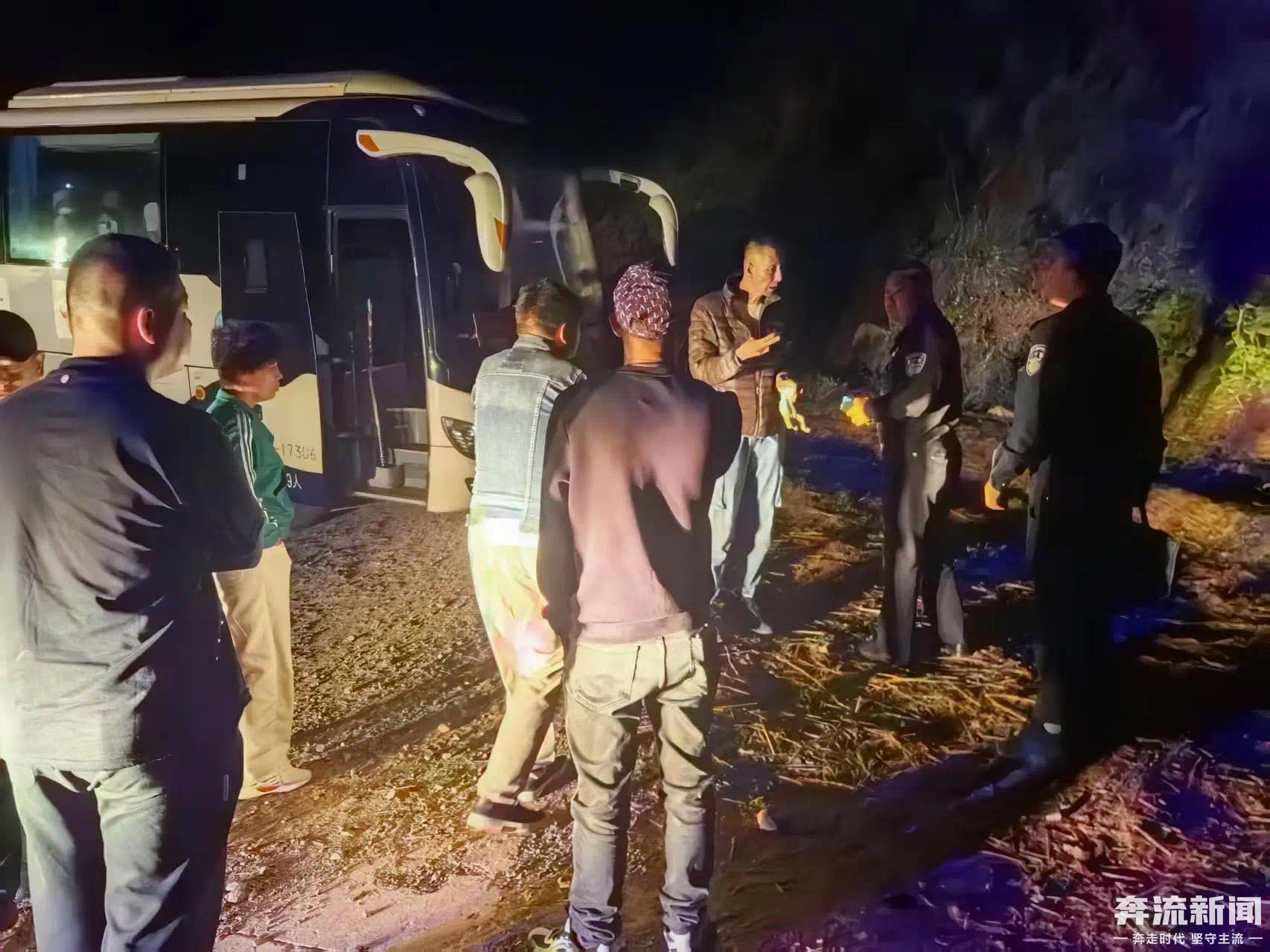 原标题:旅游大巴车深夜山中被困 甘肃宕昌警方冒雨救援妥善安置54名游客
