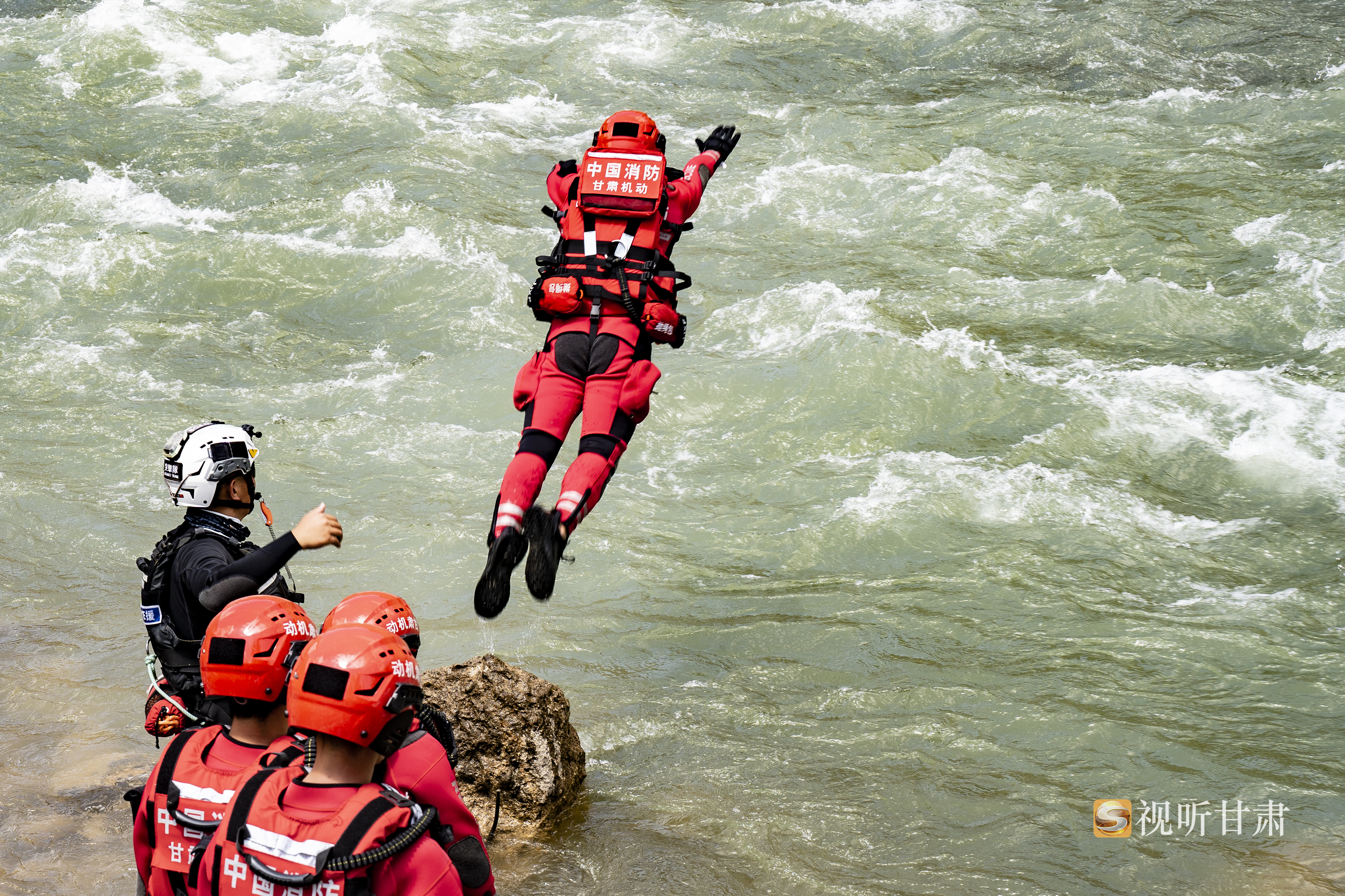 消防救援人员开展平跳式入水训练