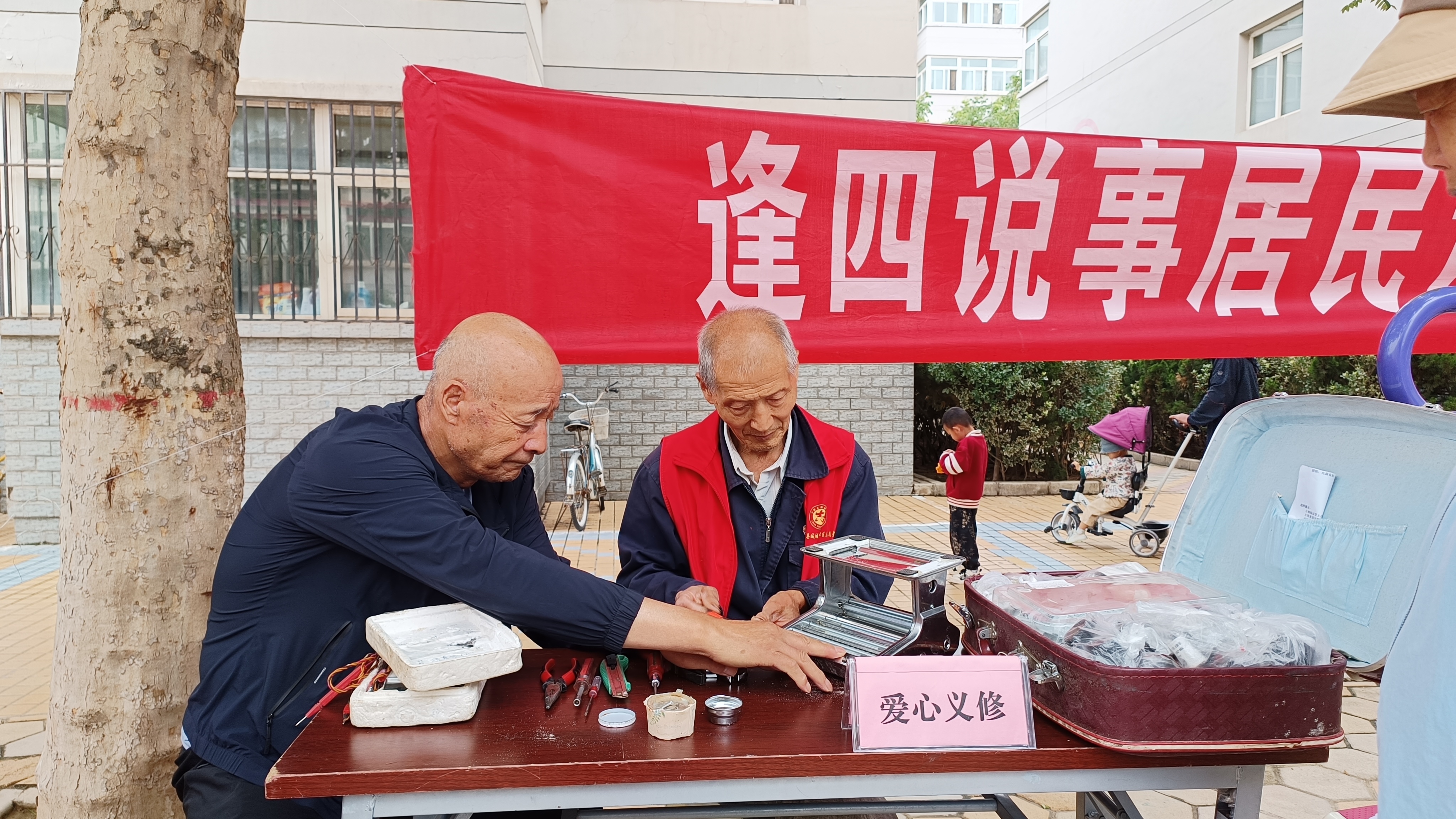 居民李忠堂高兴地说:“今天是七一建党节,社区在我们小区开展便民服务日活动,有义诊、小家电家具维修、磨刀磨剪、理发等,这些活动都是免费服务的,给我们带来了极大的方便,让我们感受到了党和政府的温暖。”