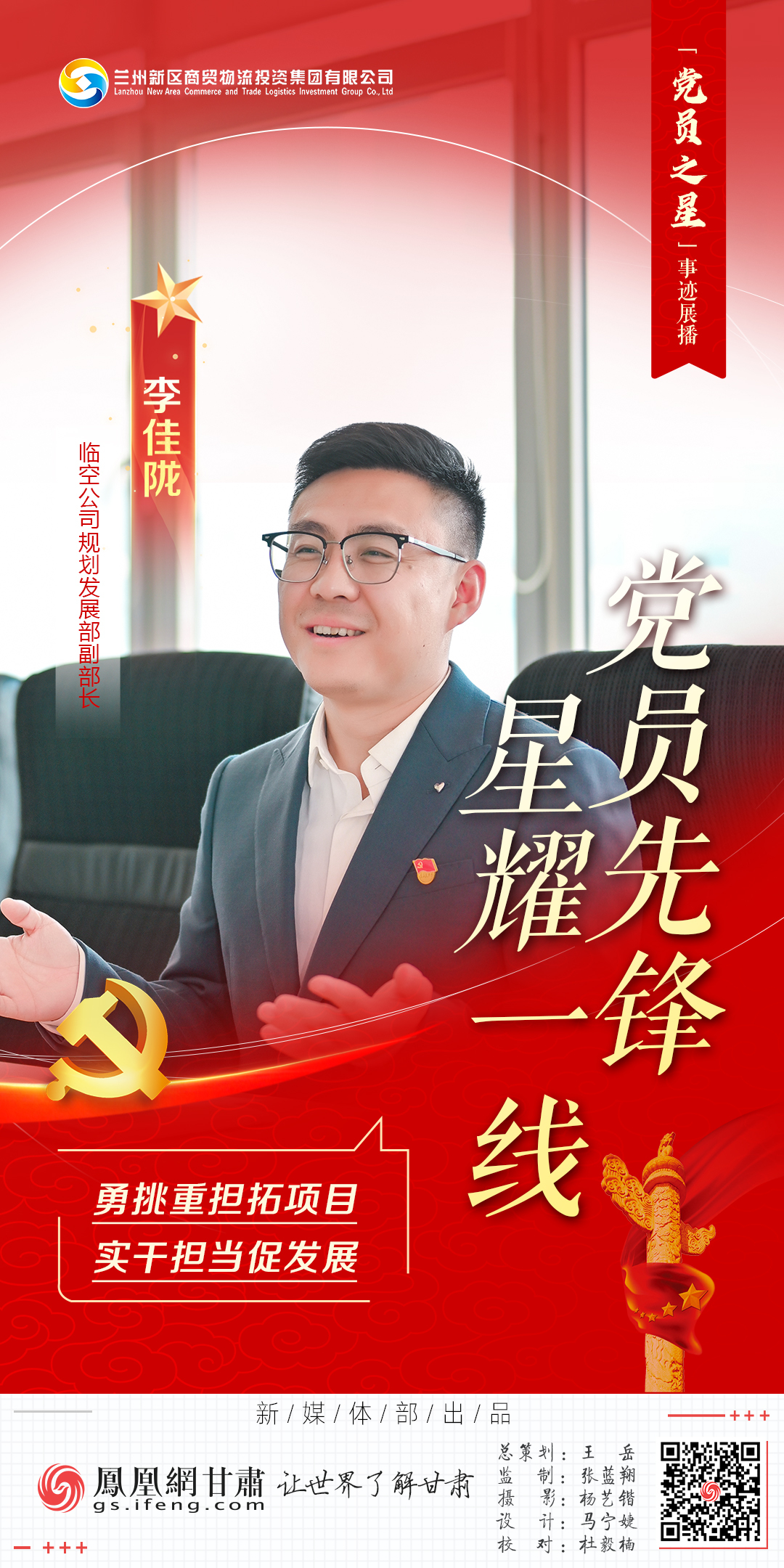 在丝路新城充满活力与挑战的热土上,兰州新区临空产业投资有限公司(以下简称“临空公司”)规划发展部副部长李佳陇以一名优秀共产党员的担当,将自己化作推动临空产业破浪前行的关键引擎。从蓝图擘画到项目攻坚,再到企业桥梁,他用实干书写服务企业发展大局的篇章。