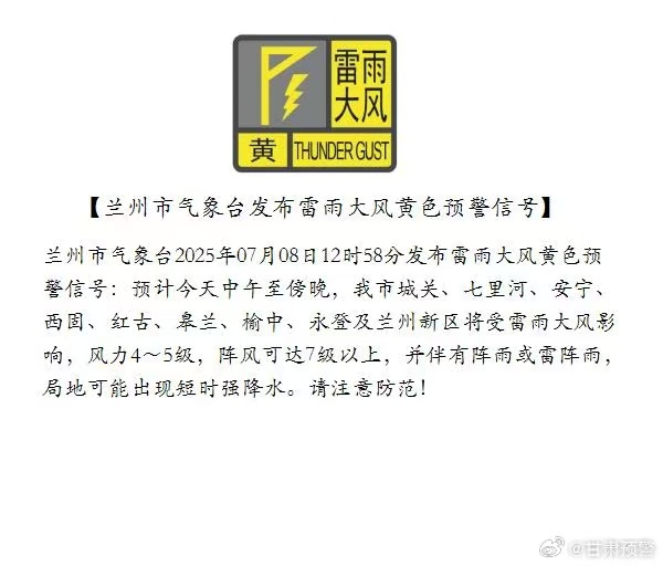 相关新闻:兰州市气象台发布雷雨大风黄色预警信号