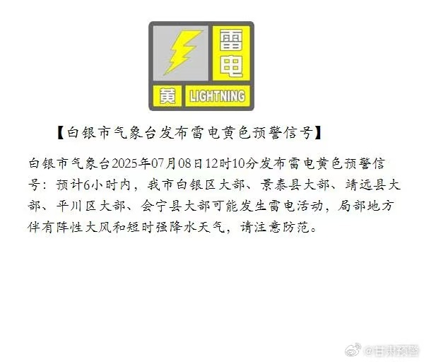 白银市气象台发布雷雨黄色预警信号