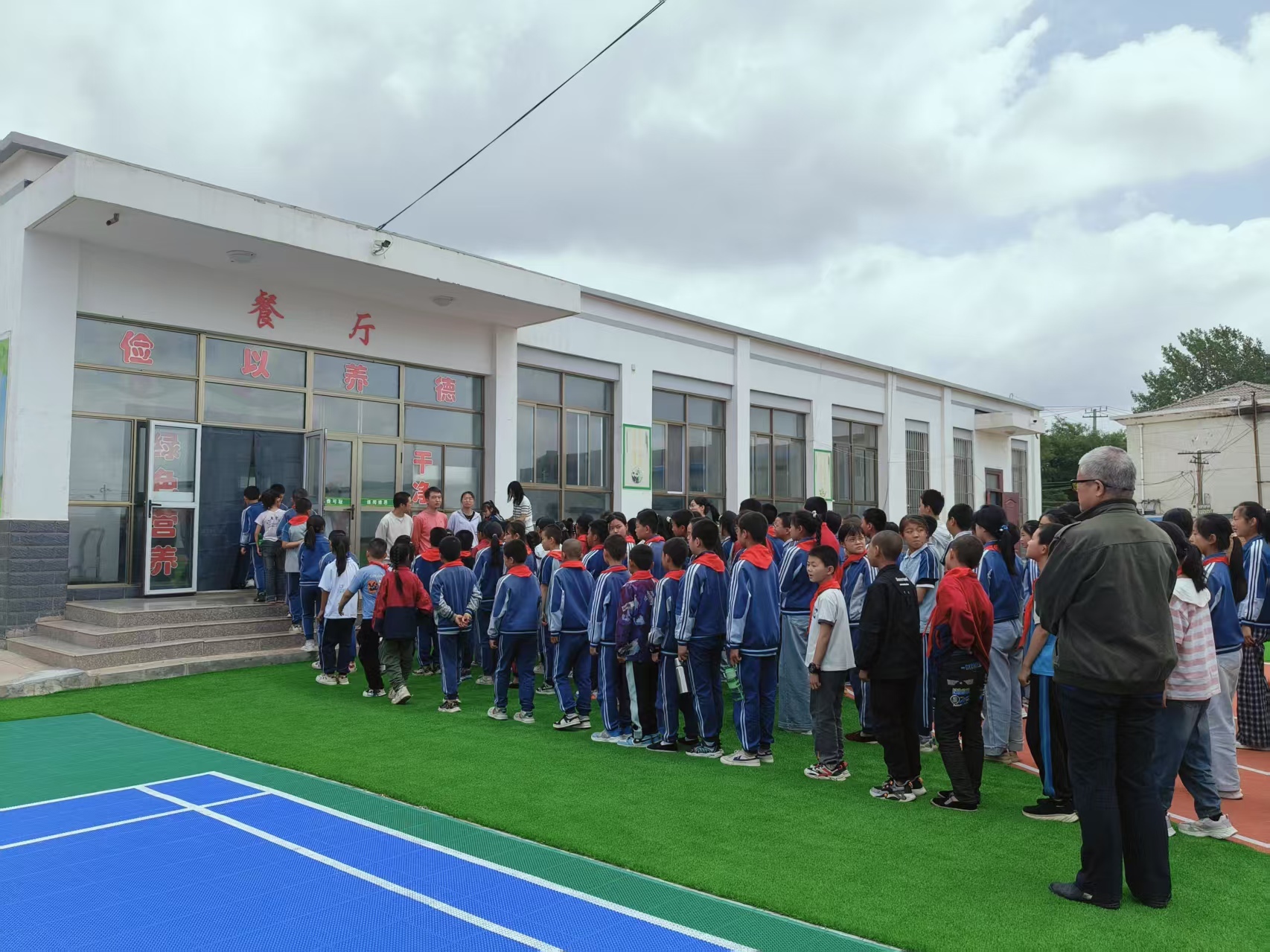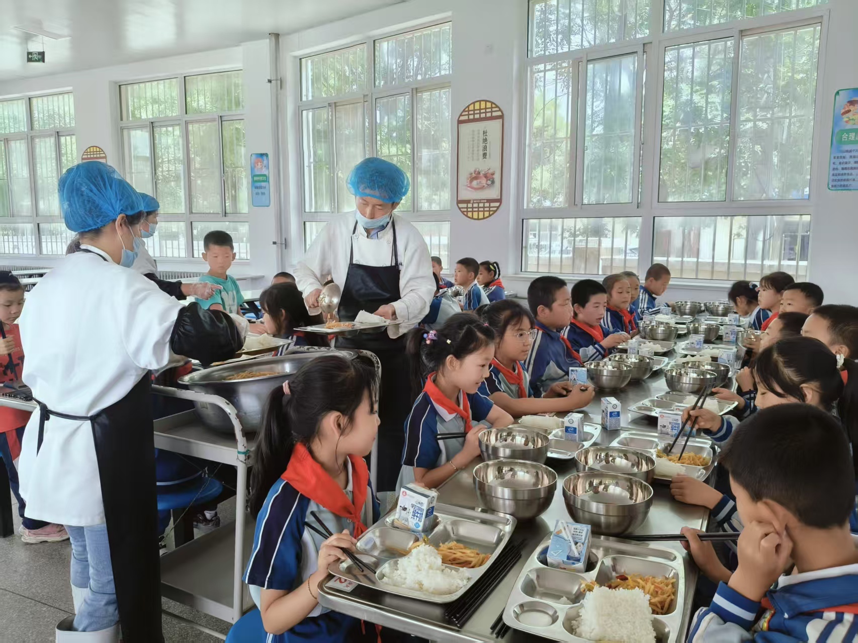 为确保孩子们在校就餐午休每个环节都能安全落地,学校建立了教师陪餐制度,每日值班老师与学生同桌用餐,及时发现问题;午休时段有专人巡查,随时关注学生状态;厨师每周审核配餐单,让家常味道与科学营养在餐盘里相遇。