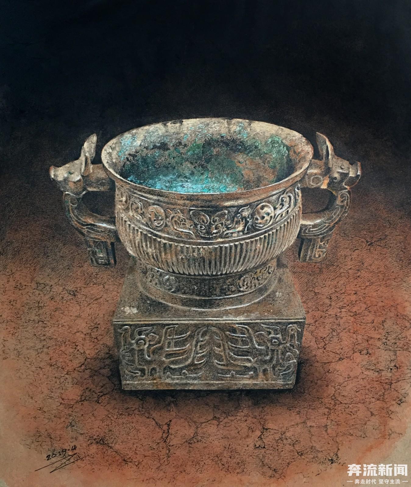 奔流新闻记者了解到,本次展览作品聚焦青铜器、陶器、佛像等华夏瑰宝,突破了传统文物绘图的窠臼。兰州市钢笔画协会会长何军评价:“赵老师融合重彩、淡彩等多元技法,形成了独树一帜的艺术风格,赋予文物深邃的文化表现力。”