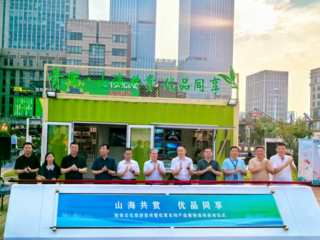 7月18日,“山海共赏 青陇优品”陇南市文化旅游宣传暨优质农特产品展销活动在青岛国际啤酒节西海岸会场和崂山区分会场惊艳启幕。开馆当日,青岛市政府副秘书长陶兴成与陇南市委副秘书长、崂山区政府副区长、青岛协作陇南第四批挂职干部工作组领队刘凌分别致辞,并与陇南市数据局局长、陇南赴青岛第七批挂职干部工作队领队孙磊,青岛市文旅局副局长高正佳,陇南市文广旅局党组成员、副局长荣华等领导共同为双馆揭幕。陶兴成副秘书长驻足展区,盛赞陇南“得天独厚的自然资源禀赋”,强调青陇协作将持续发力,为两地文旅产业繁荣注入强劲动能。