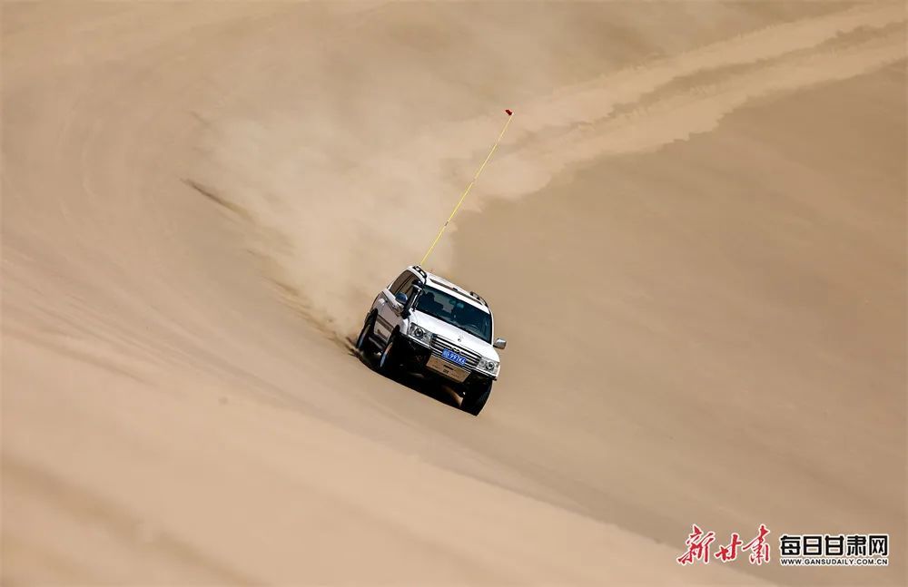 在连绵沙丘上冲高俯低