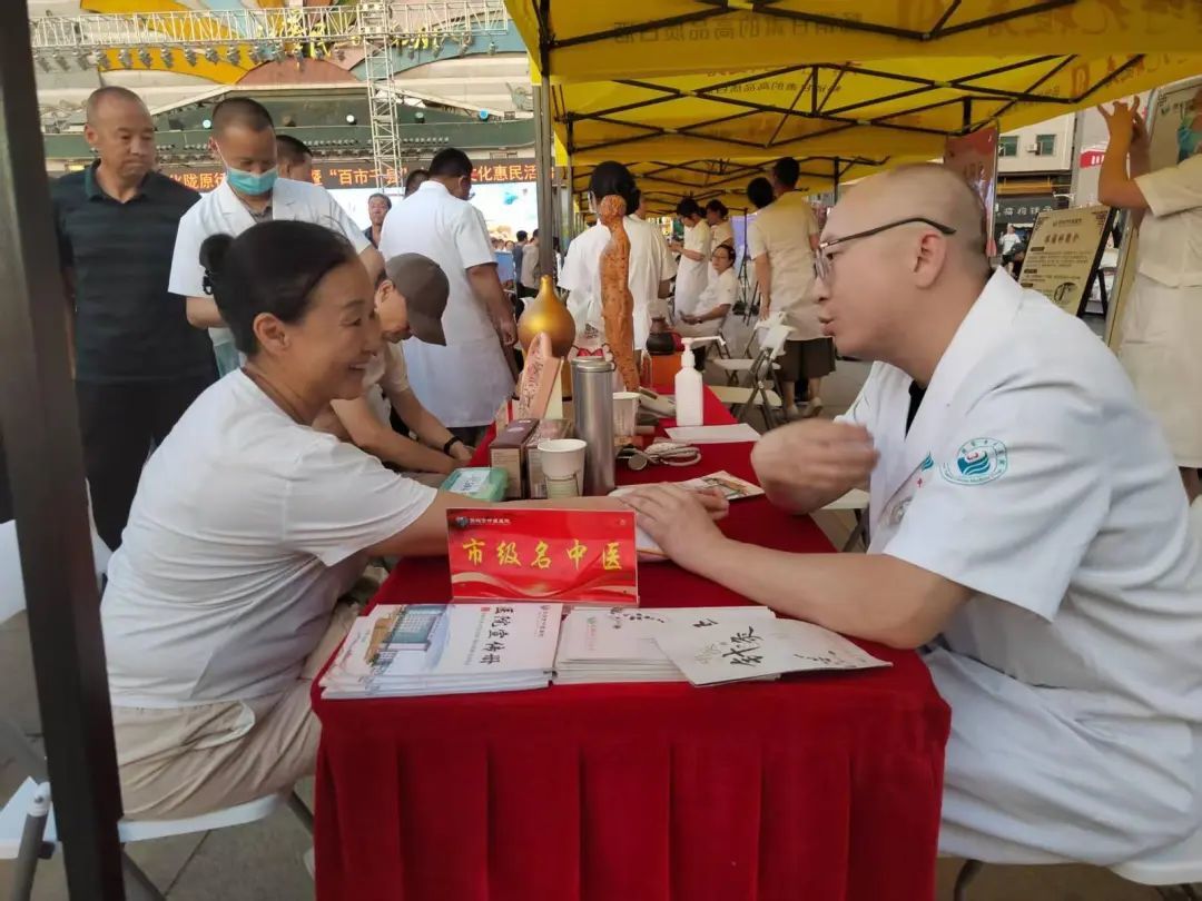 启动仪式上,百名青年医师齐声诵读中医经典《大医精诚》,铮铮誓言诠释医者仁心。活动精心设置八大主题展区,让古老智慧可感可触:养生功法区,150名医务人员齐练八段锦气势恢宏,现场教学吸引众多市民参与。市民钱玉龙兴奋表示:“这八段锦150个人一起练,太有气势!我刚才跟着老师学了两节以后肩膀都不那么僵了。这样的活动就该多办,让咱们老百姓实实在在接触中医。”科普展演区,医务人员自编自演的情景剧,将深奥的中医药知识转化为通俗易懂的生活场景,寓教于乐。养生操展演区,疏肝理气操、乳腺操、呼吸操、降压操、经络拍打操等中医运动吸引观众感受中医运动养生精髓。名医义诊区,20个义诊台前,省市名中医坐诊,提供诊疗咨询与辨证开方。市民曹爱萍感慨:“专家号平时难挂,今天在这儿就能免费问诊,大夫不光给我把了脉,还告诉我平时怎么用食疗调理。这展区里还有展板,啥病该注意啥,写得明明白白,咱们普通老百姓就需要这种实实在在的服务。”知识展览区,以宣传片、短视频及图文并茂的展板形式系统展示中医药健康理念与文化内涵。技术展示体验区,展示多种中医特色治疗物品器具,由临床经验丰富的医护人员,免费为广大群众提供针灸、推拿、刮痧、拔罐、穴位贴敷、耳穴压豆等10余种经典中医外治疗法及适宜技术的体验服务,让市民切身感受中医技术的独特疗效。