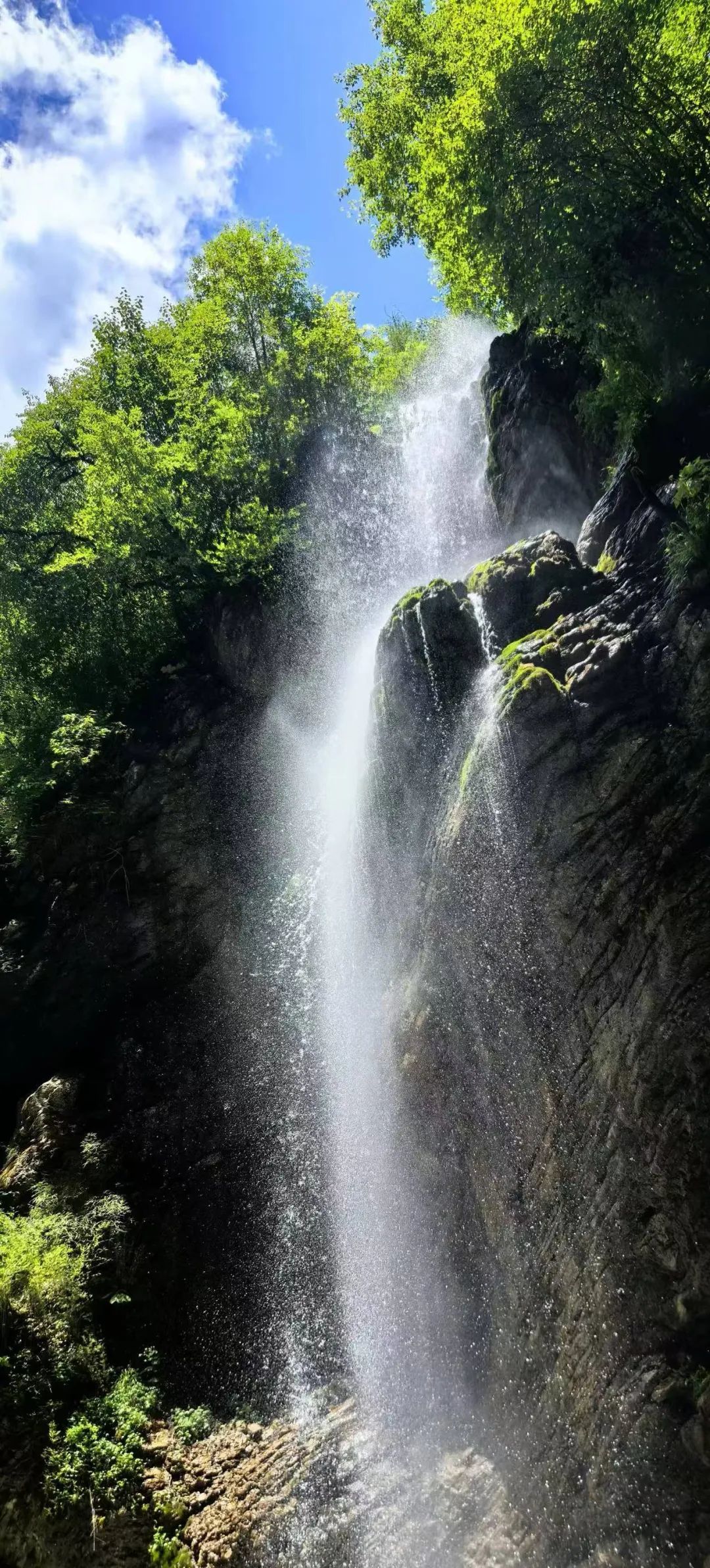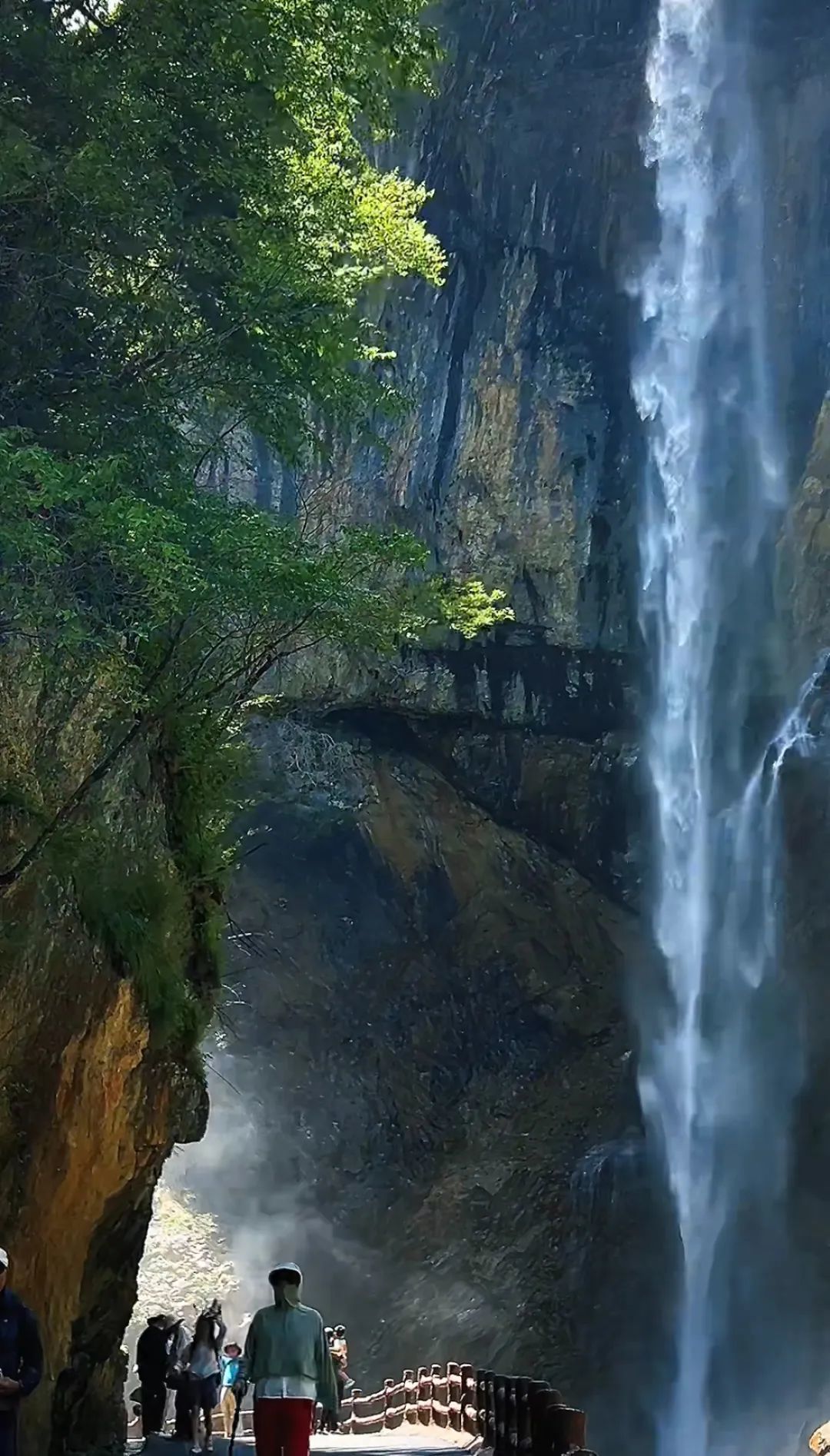 行至深处,瀑布如银练般从崖壁上倾泻而下,撞击在潭中,激起层层水雾。站在瀑布前,感受着扑面而来的清凉,听着那震耳欲聋的水声,心中的烦闷与压抑仿佛都被这股力量驱散。